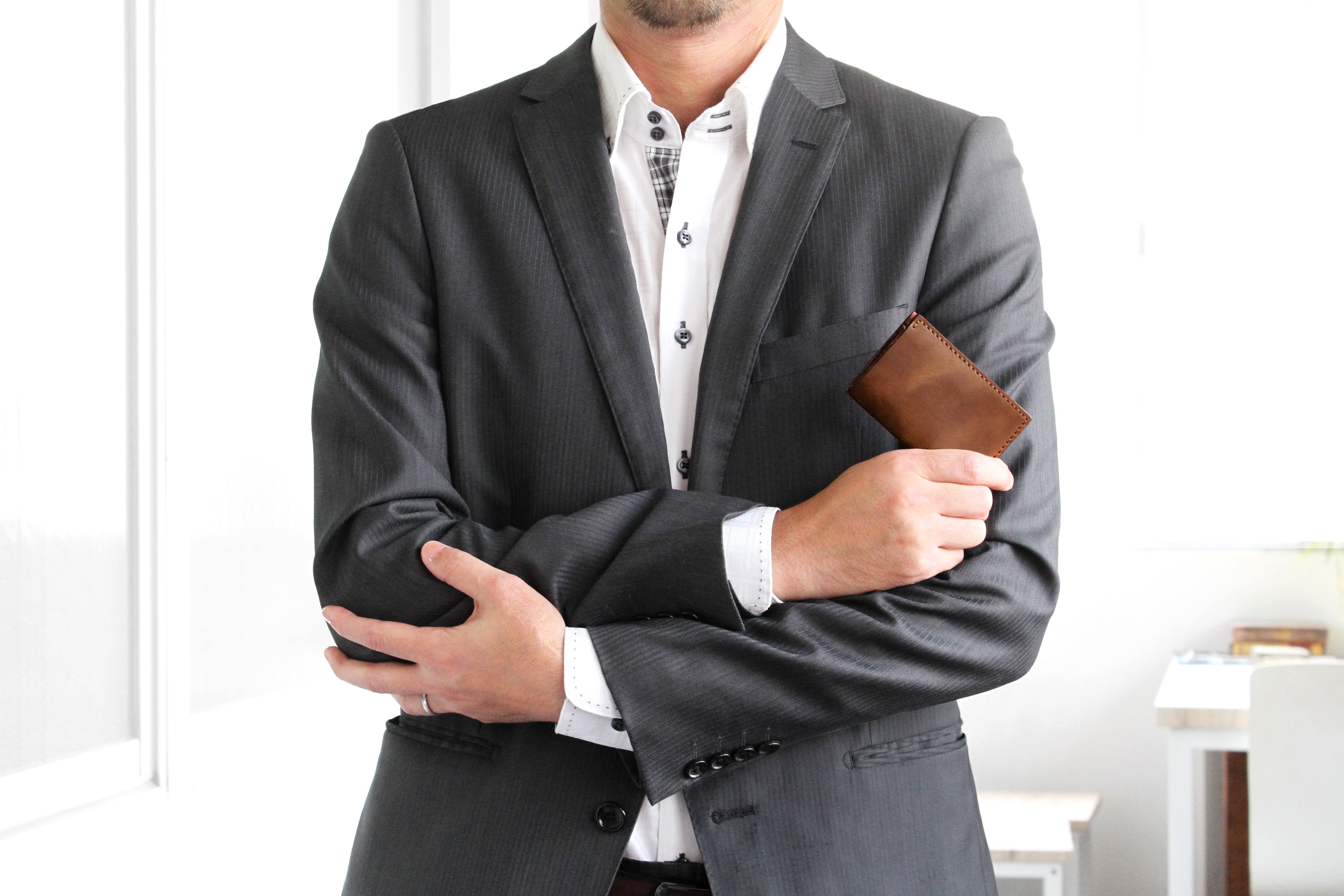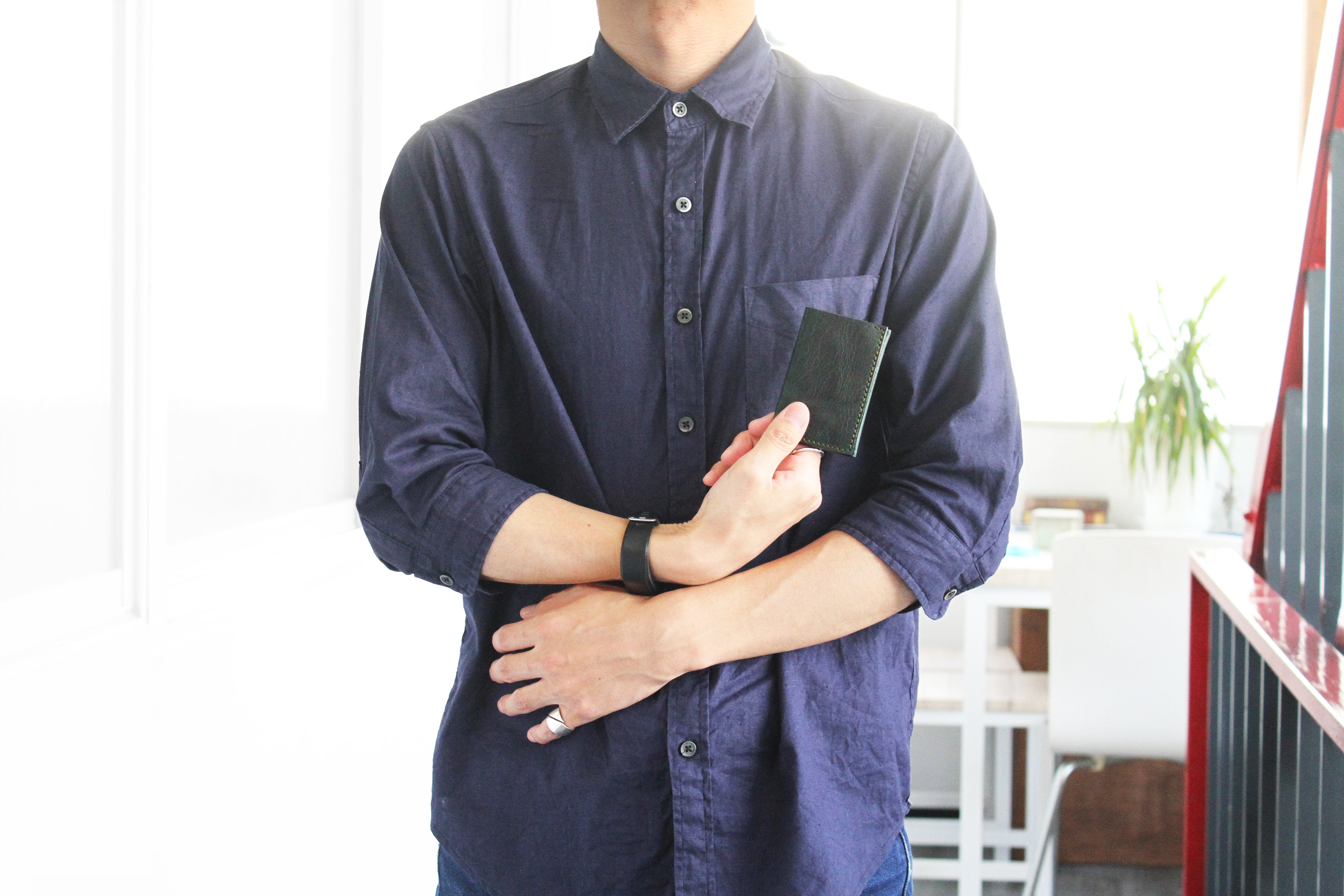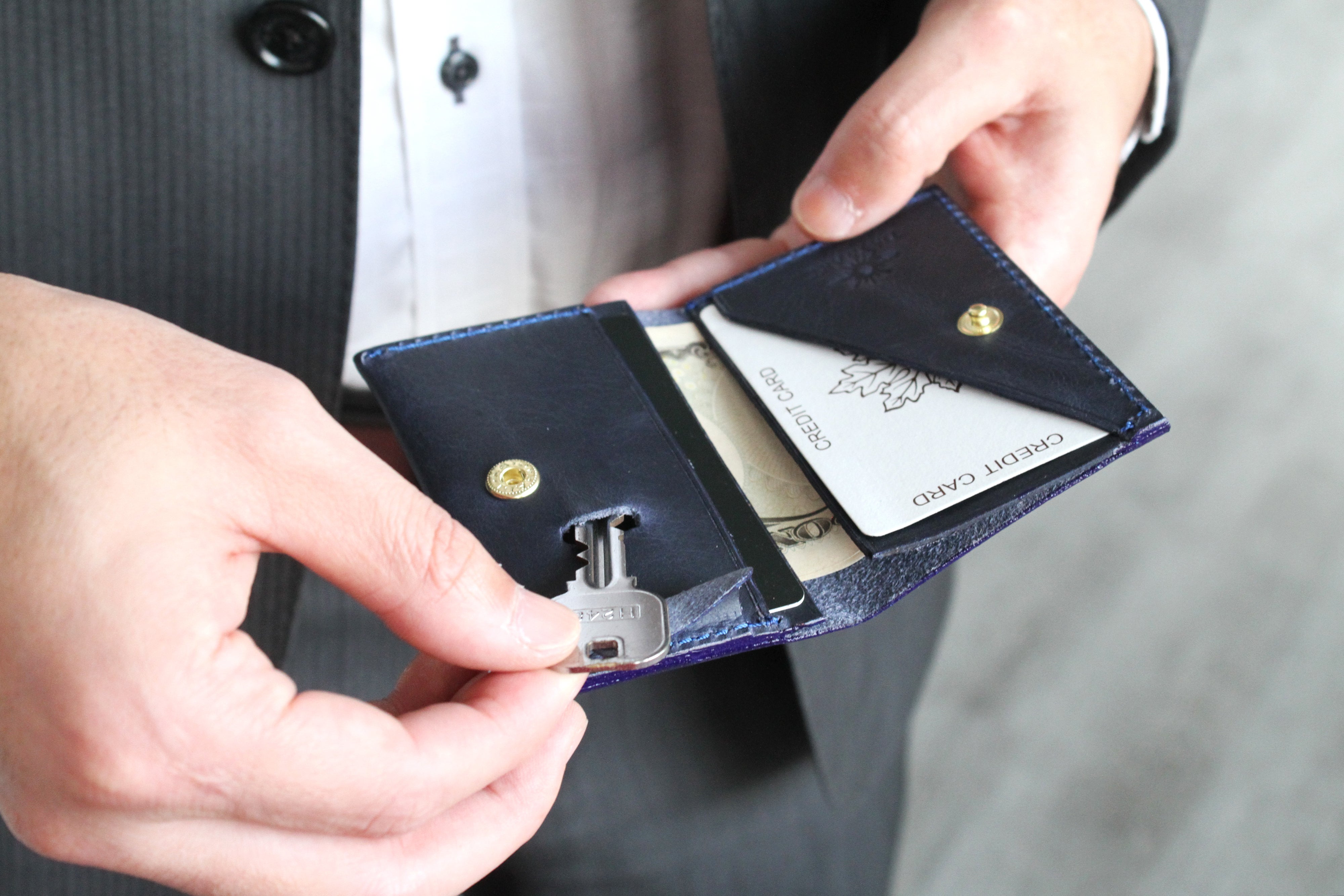 ・スーツでもポケットが膨らまないスリムな財布。[30代男性] ※ネイビー