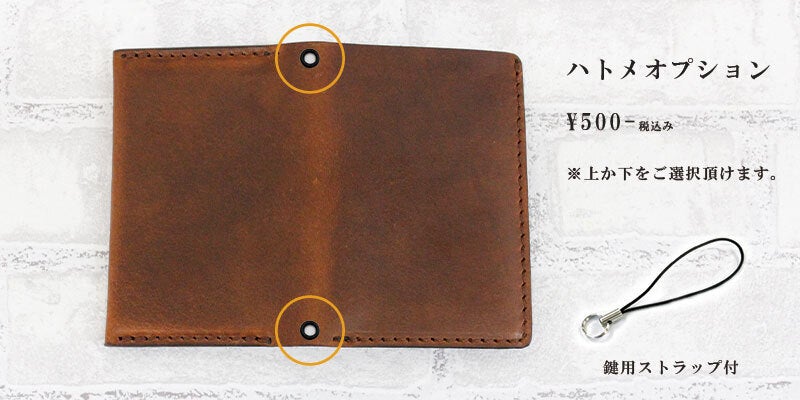 注)こちらのオプションはお財布と同時注文頂いた方のみのオプションとなります。ハトメオプションのみご注文頂いた場合のリターンはございませんのでご注意ください。