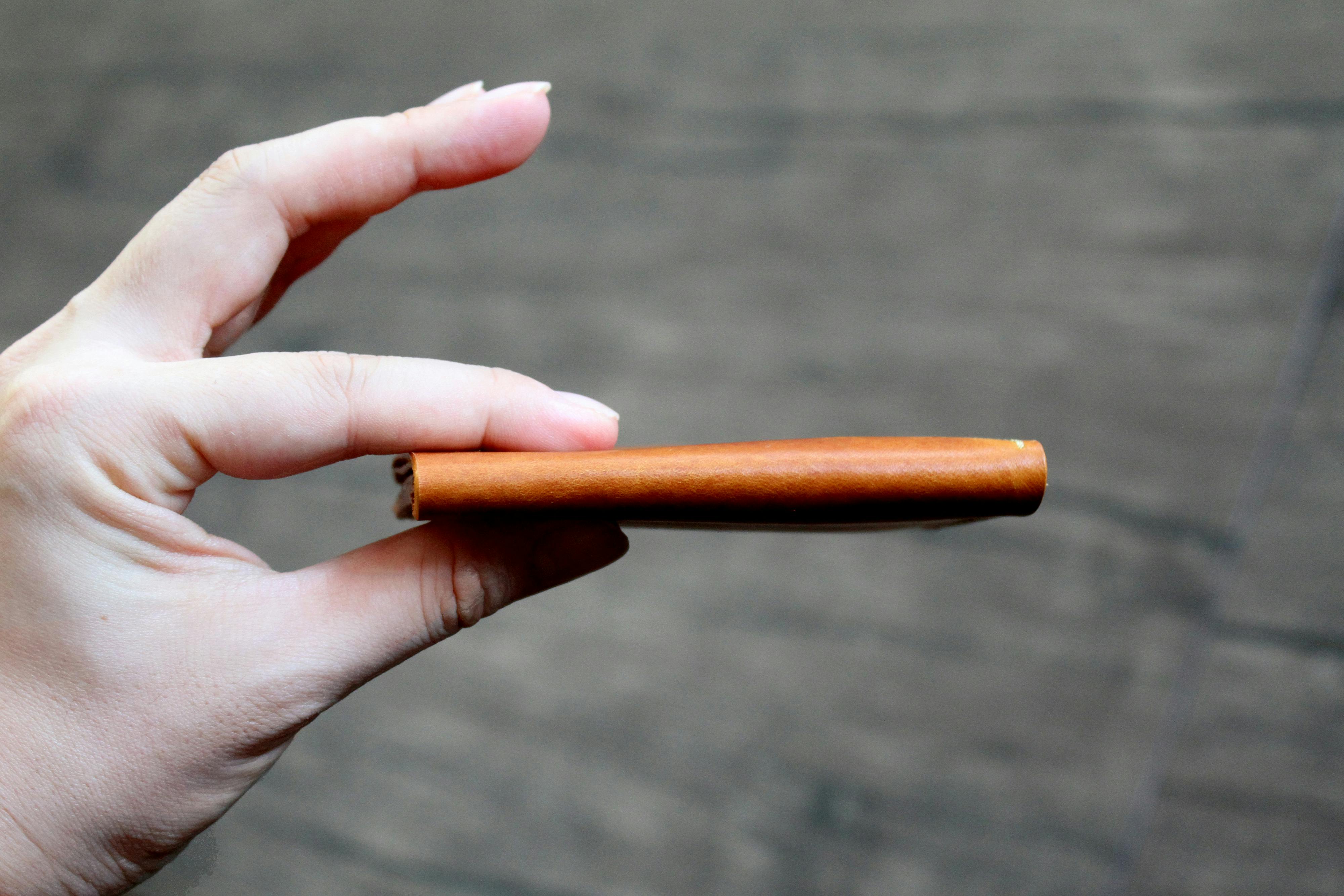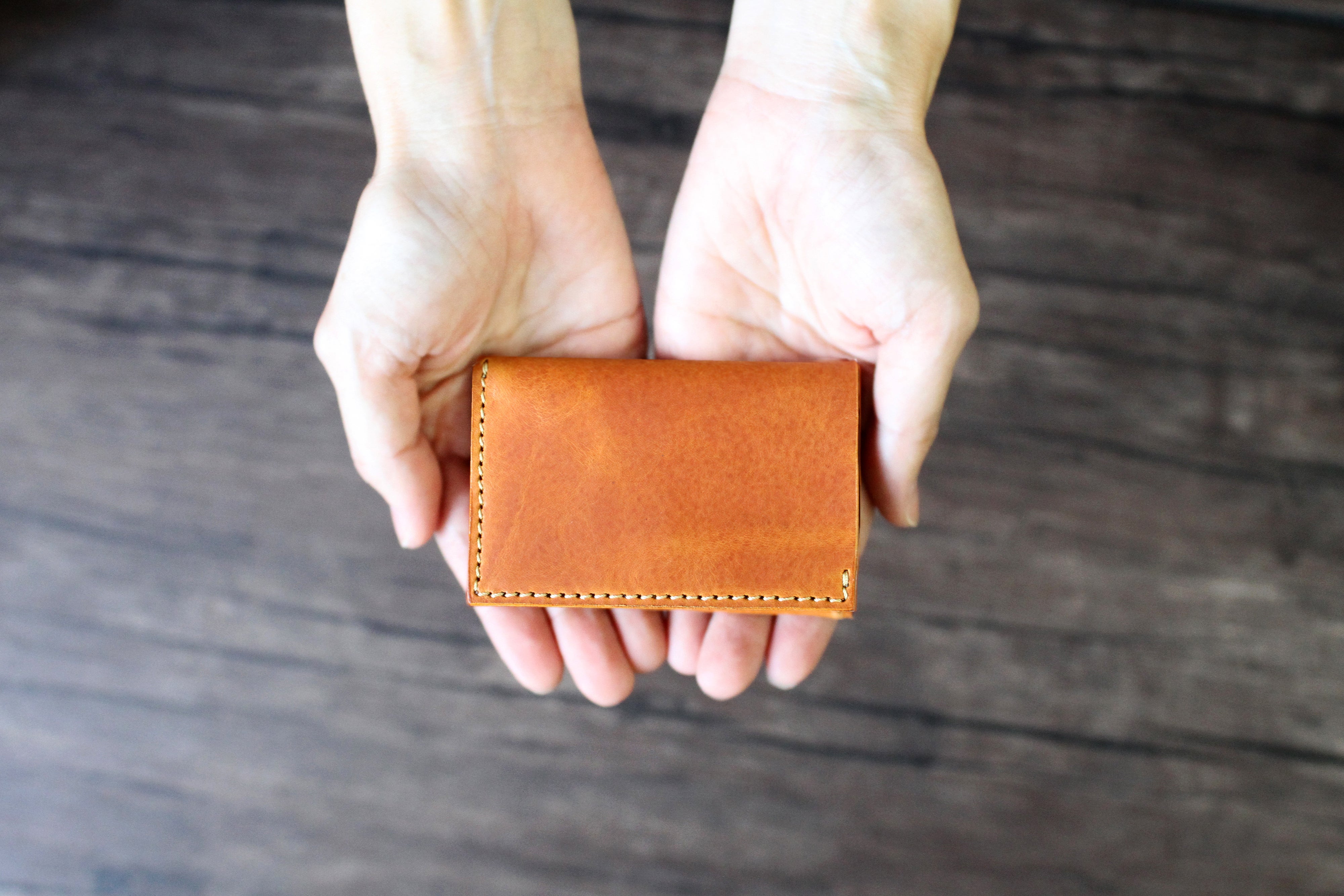 財布が小さくなったからこそ一番失ってはならない『高級感』。製品にした際の高級感と美しくエイジングできる革を厳選して革選び致しました。弊社革製品でもよく使う革ですが、弾力性があり、キズに強くオイルの移動で表情を変化させるプルアップ効果のあるオイルレザーです。