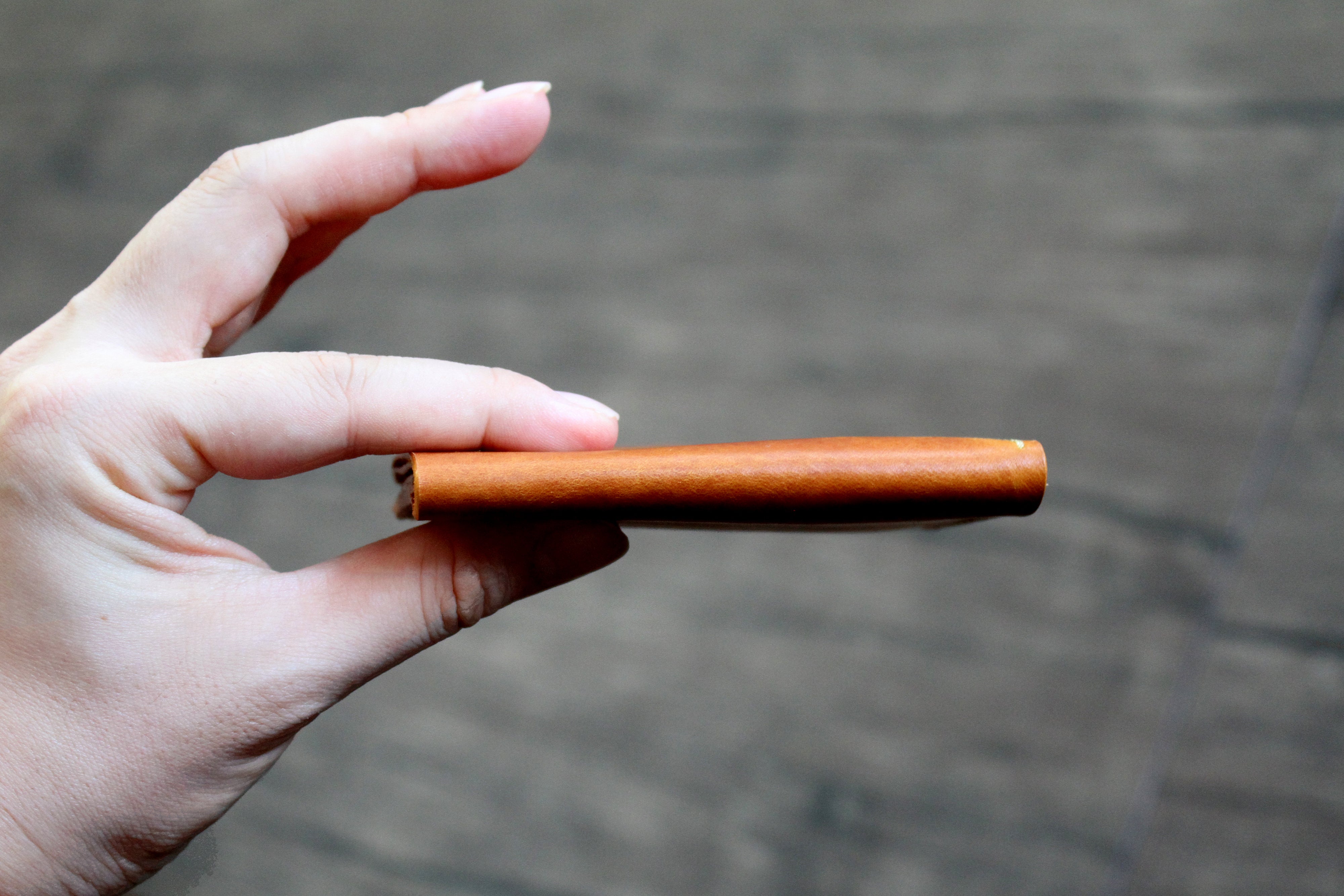 指で摘まむとオイル成分が革の繊維を移動し、表情の豊で味わい深い革です。