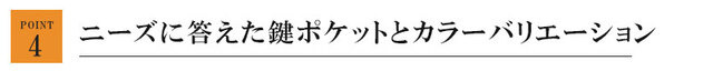 そこで今まで鍵を小銭入れに入れていた方も取り出し易く場所が明確な鍵ポケットを見やすい位置に搭載致しました。
