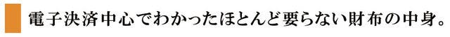しかし今、日本でもモバイル電子決済の導入が進められ、国策事業と相まって決済元大手各社がポイントバックを広告に、競うように普及を促しており、小さい財布を持つ方が急速に増えております。