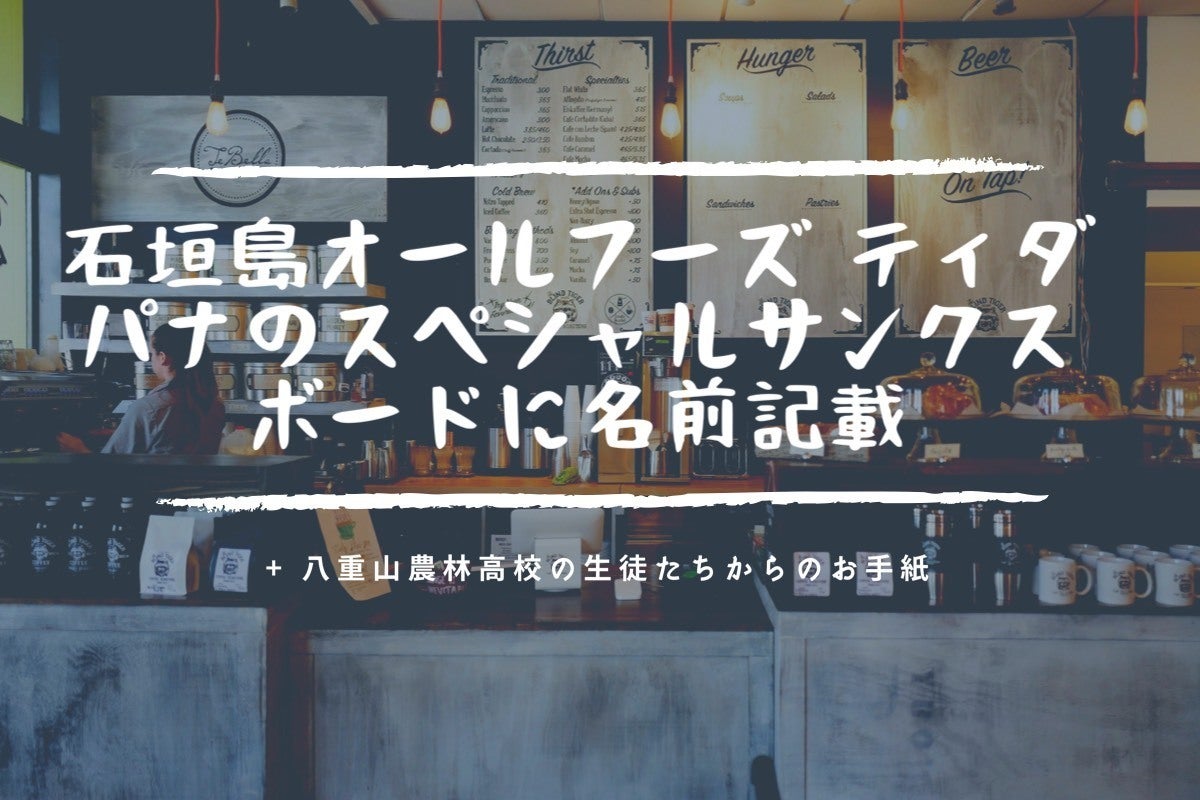 店長高校生からの感謝のメッセージ &石垣島オールフーズ ティダパナのスペシャルサンクスボードに名前記載