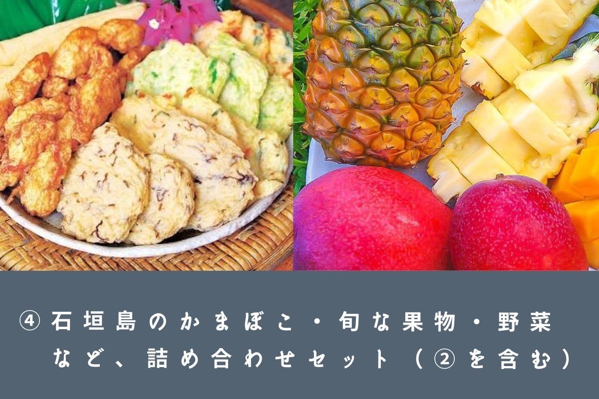 石垣島のかまぼこ・旬な果物・100%ジュース、どれかの詰め合わせセット