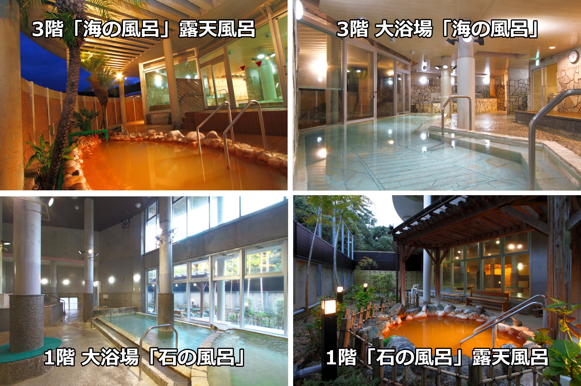 3階大浴場「海の風呂」は明るく開放的で、南国ムードを漂わせます。
