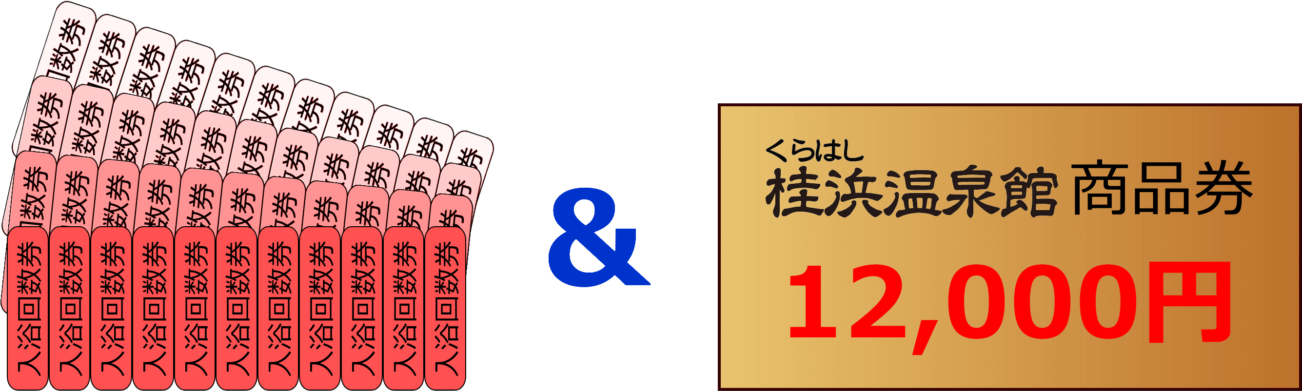 【大人入浴回数券11枚綴り×4セット&桂浜温泉館のレストラン及びショップで使用できる商品券12,000円分 】