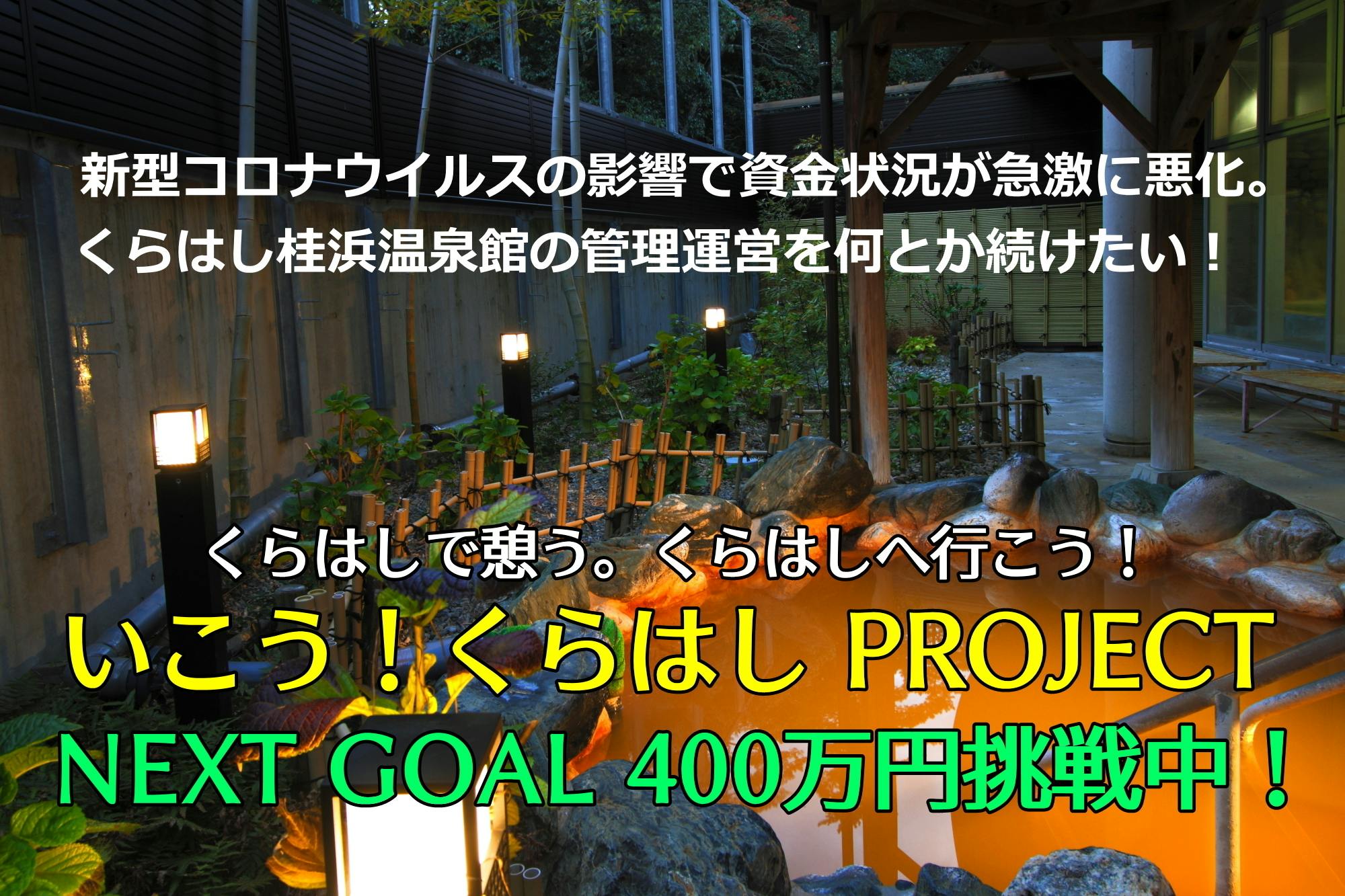 2020/10/13 19:09『いこう!くらはしPROJECT』NEXT GOALを達成しました!皆様のあたたかいご支援を賜り、心より御礼申し上げます。当初目標金額は100万円でしたが、4倍の400万円のご支援をいただき、また、励ましや応援のメッセージもたくさん頂戴しており、支援者様の倉橋愛を身に染みて感じております。ご支援応募の終了日は令和2年10月30日です。まだまだ応募期間はたっぷりあります。引き続き、倉橋の灯『くらはし桂浜温泉館』を守るべく、広く皆様方のご支援をお待ちしております。 もっと見る