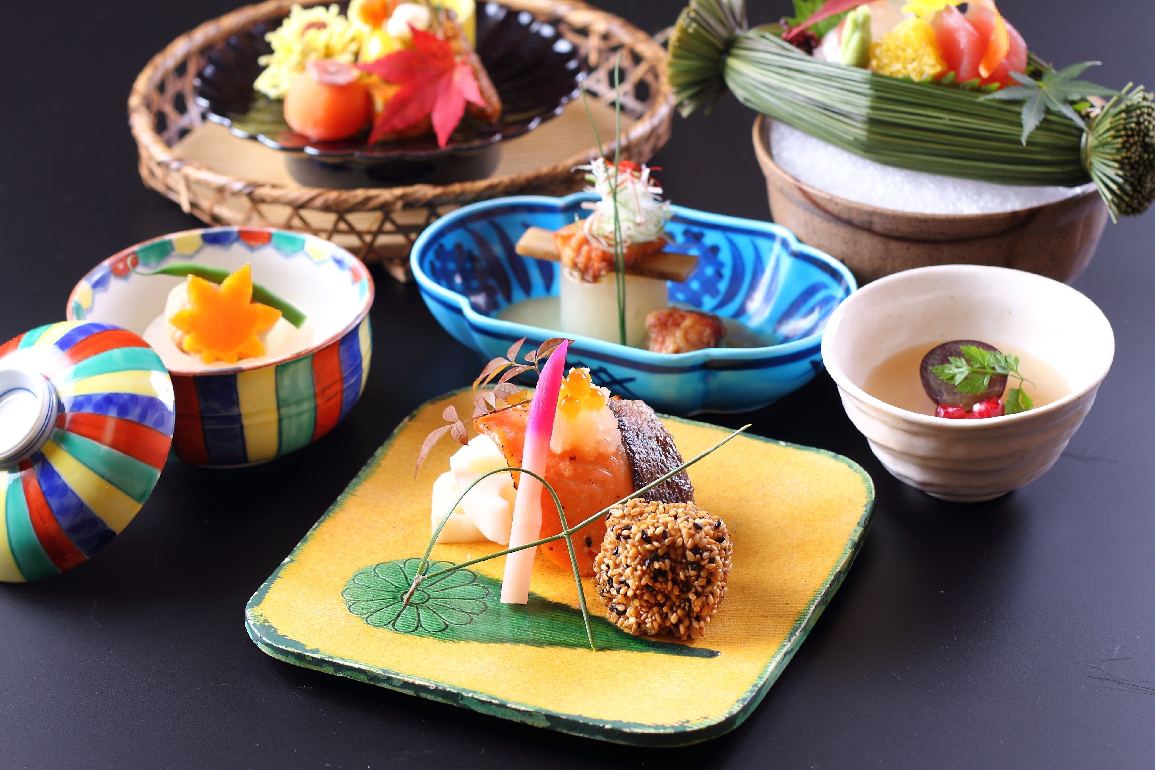 五感で堪能できる繊細な味、盛り付け。席の趣旨に調和する器の美や、季節の彩の妙。