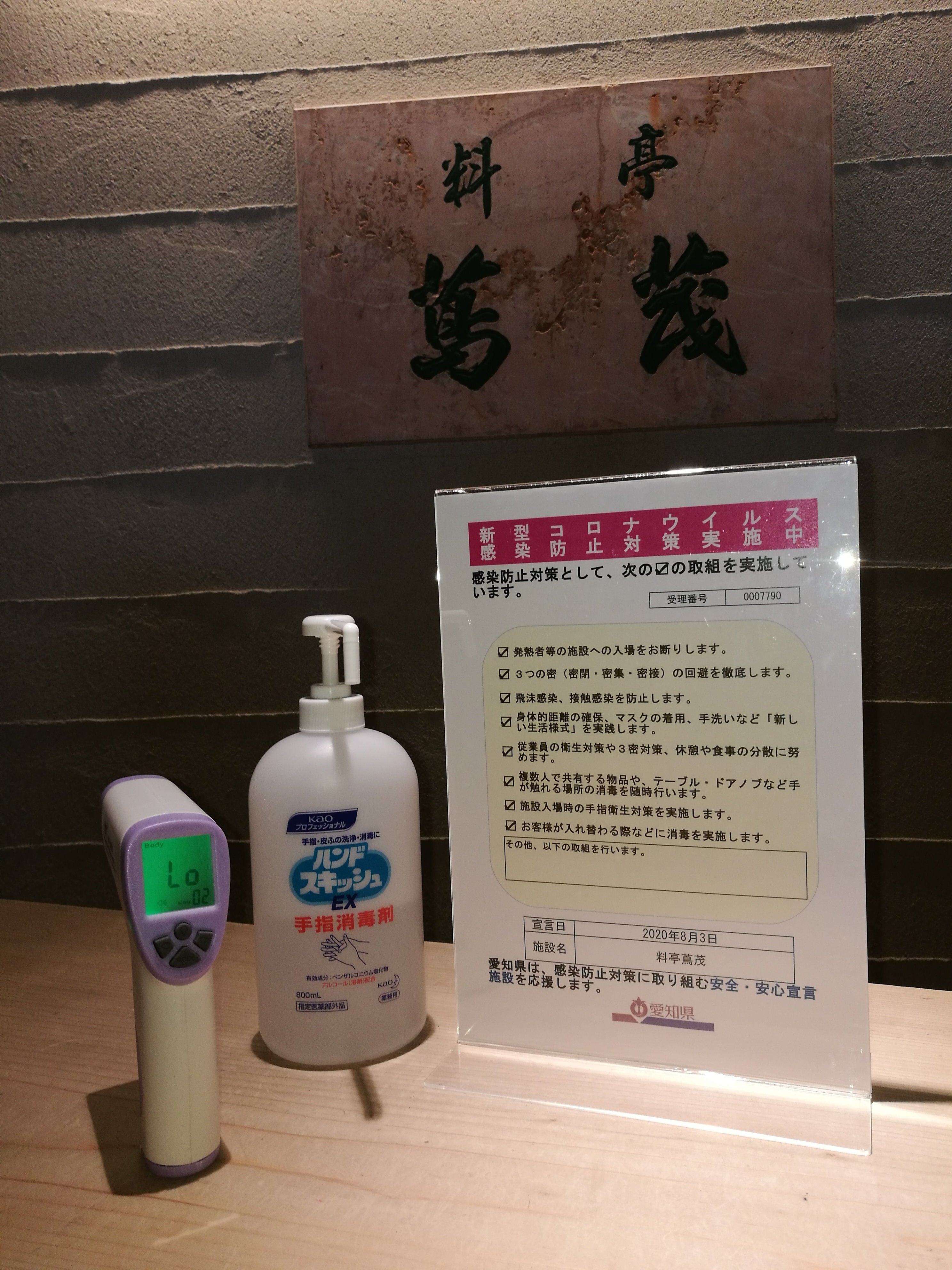 具体的には、愛知県の「新型コロナウイルス感染防止対策」のガイドラインに則り、新型コロナウイルス感染症対策を実施しており、その届け出も済ませております。