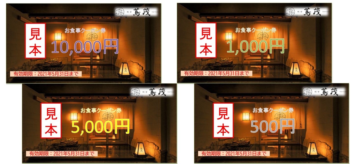なお、当クーポンは、有効期限を2021年5月31日までとさせていただきましたが、何回かに分けてご使用いただけるよう、10,000円券、5,000円、1,000円券、500円券の4種類をご支援額に応じて、お渡しできるようにしております。