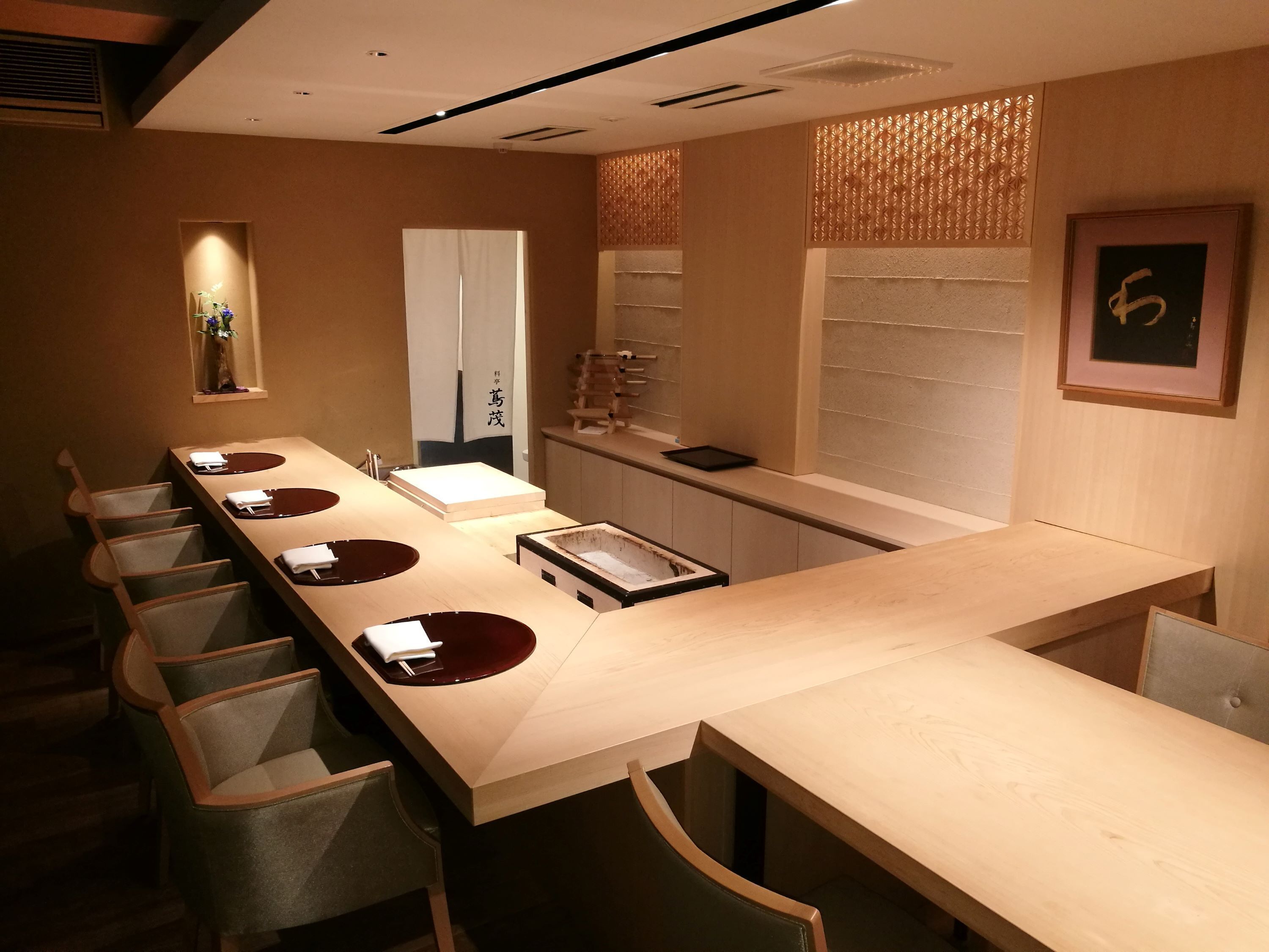 割烹スタイルのカウンター席と料亭ならではの個室
