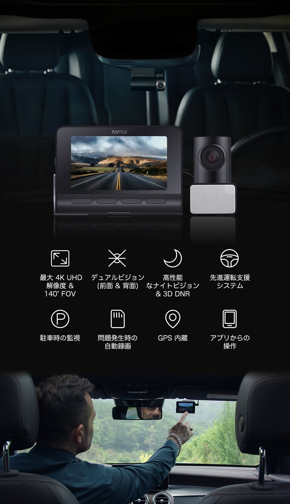 70mai A800 は、デュアルビジョンで昼夜を問わず映画品質 (最大解像度 4K) の録画が可能な車載 DVR で、運転の安全性を向上させる最先端の ADAS (Advanced Driving Assistant System: 先進運転支援システム) 技術が備わっています。また、駐車中は Parking Mode (駐車モード) になり車の周囲を監視し、衝突が検出されると自動的に録画を開始します。録画はローカルに保存され、アプリ内での表示、オンサイトでのダウンロード、即座な共有が可能です。