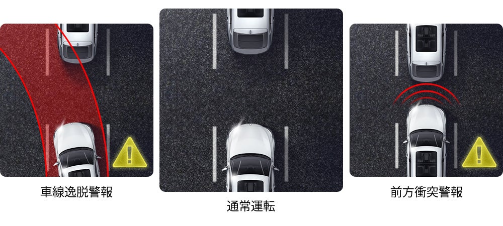 Lane Departure Warning (LDW: 車線逸脱警報) システムは、車が安全に車線の走行レーンに留まっているかどうかを A800 のカメラで監視します。注意力が散漫になり車線に近づいた場合、LDW システムから音声で警告が発されるので、日々の運転の安全性が高まります。