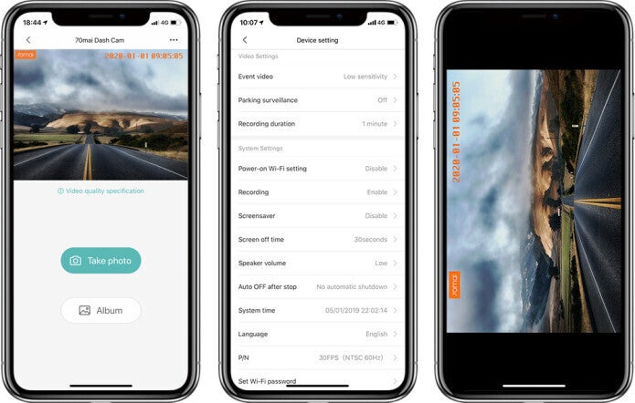 インストールはとても簡単です。特別な配線が不要なため、A800 の設置は数分で完了します。フロントガラスに設置して車のシガーソケットから電源を取り、70mai アプリをダウンロードした後に内蔵 Wi-Fi を使用してスマートフォンに接続します。これだけで、自分の車を24時間年中無休で監視することができます。