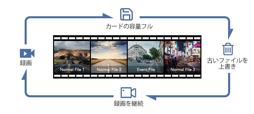 A800 はループでビデオ録画を行い、運転中はローカルの Micro SD カード (最大 128GB までサポート) にデータを保存します。そして、事故発生時はビデオで証拠をキャプチャして、そのデータが上書きされるのを確実に防ぐようにします。ビデオの確認は、無料のアプリからビデオを再生またはダウンロードするだけで可能です。