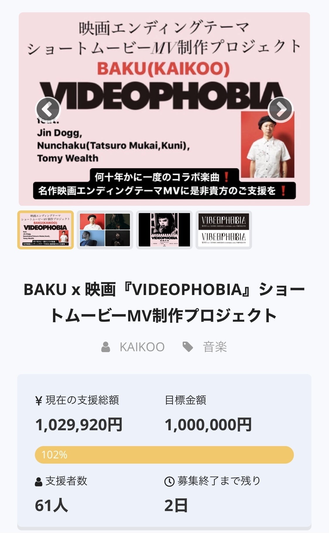 この度はBAKU x 『VIDEOPHOBIA』ショートムービーMV制作プロジェクトへのご支援をいただきまして、誠にありがとうございます。