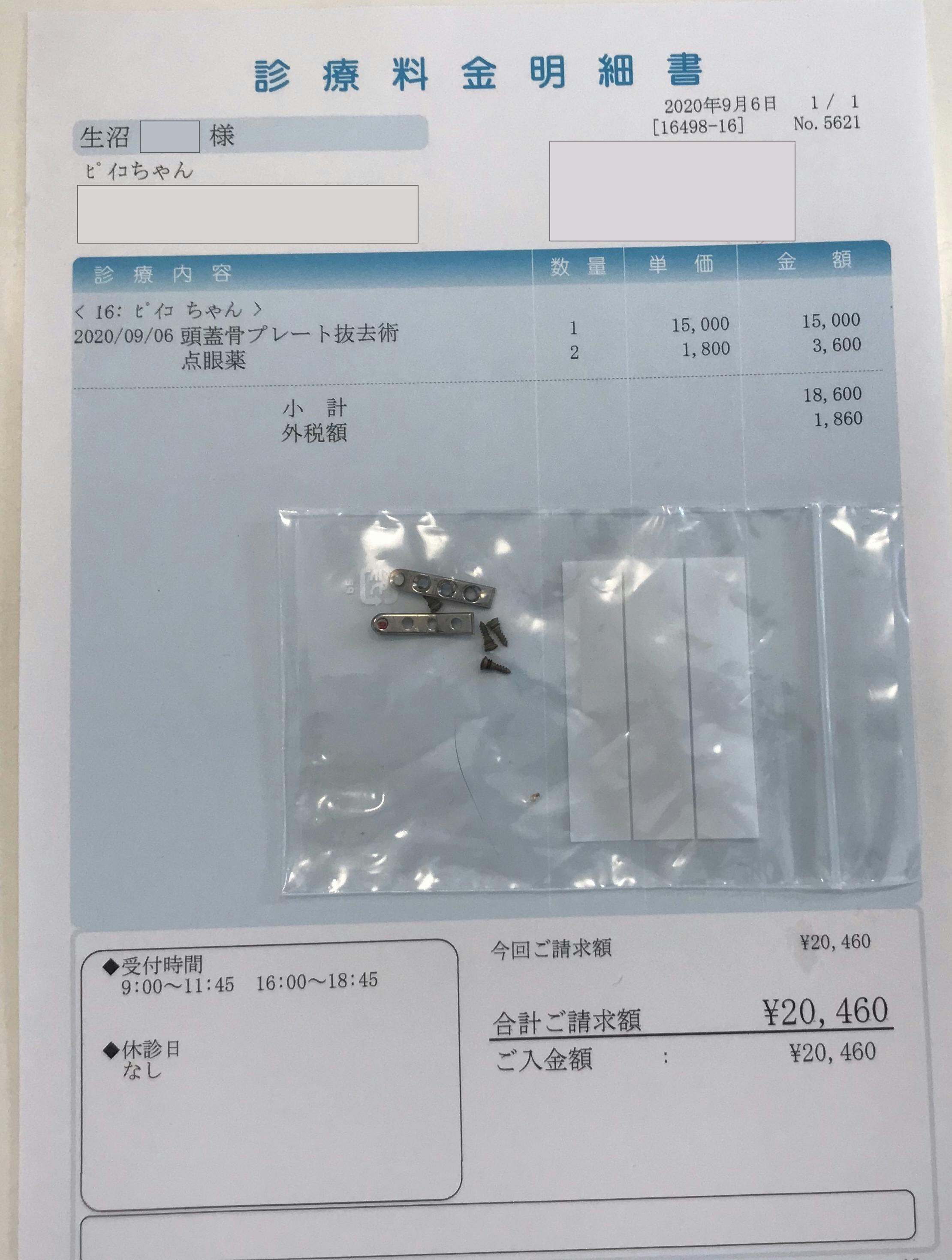 ・頭部の固定プレート取り外し手術(2万円予定)(約一ヶ月後に実施予定)