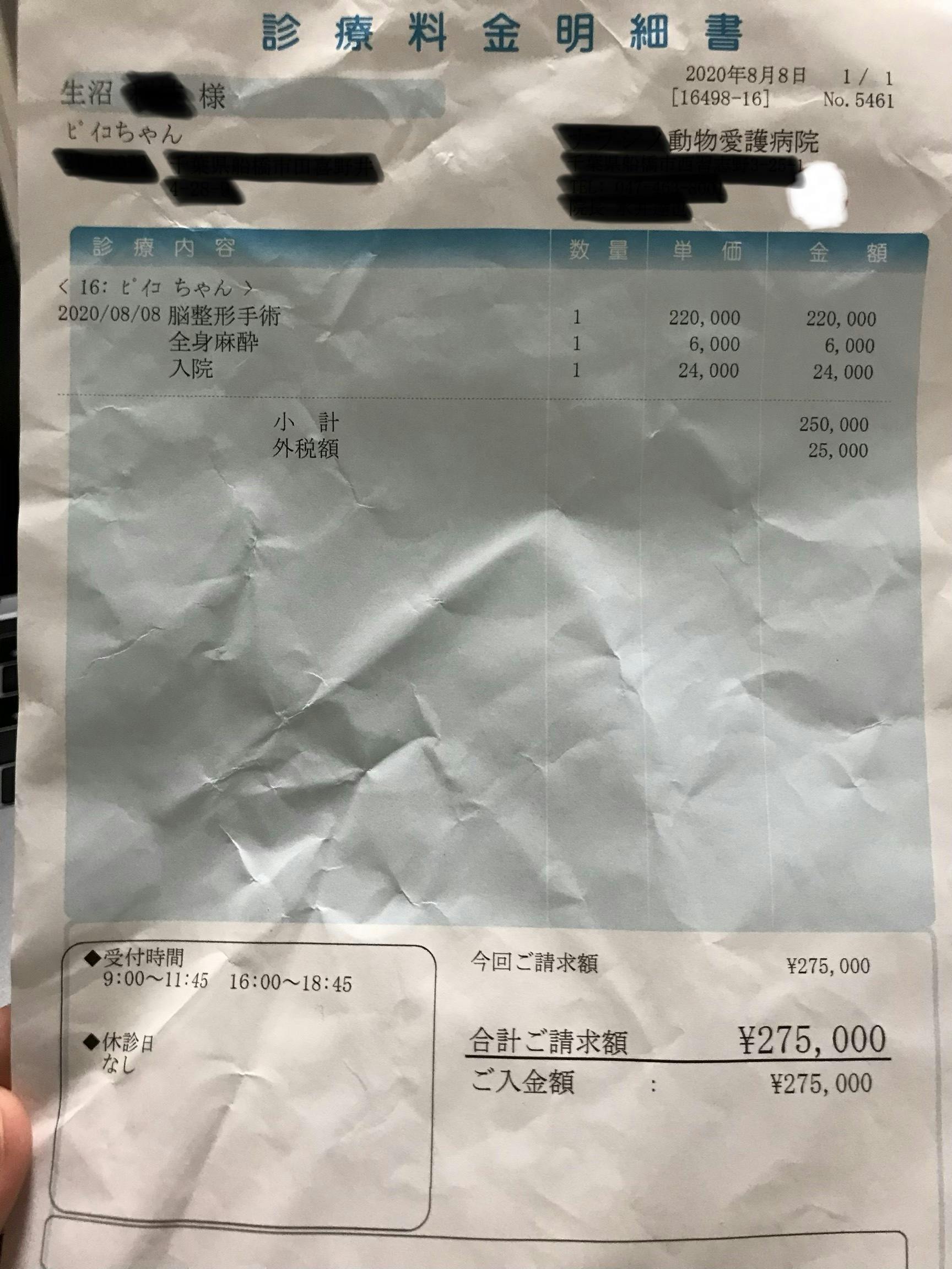 (ぴいこは目の炎症もありましたので点眼薬代が追加で入っております。)