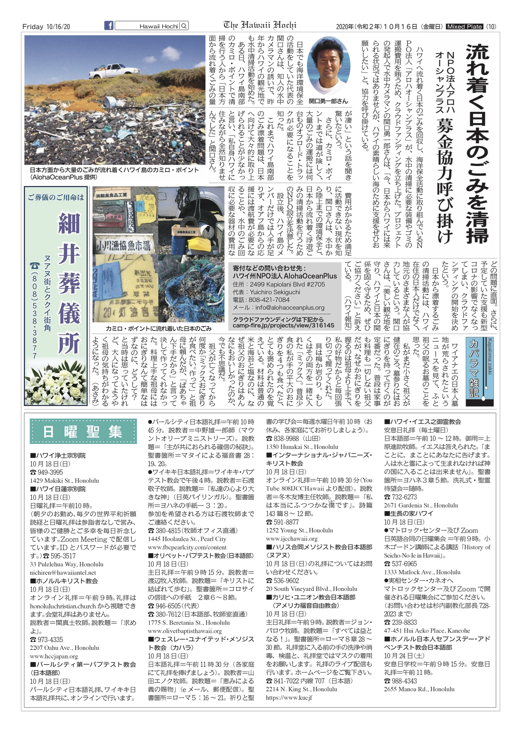 2020/10/20 05:19ハワイ報知新聞で今現在の支援活動を掲載していただけました。 もっと見る