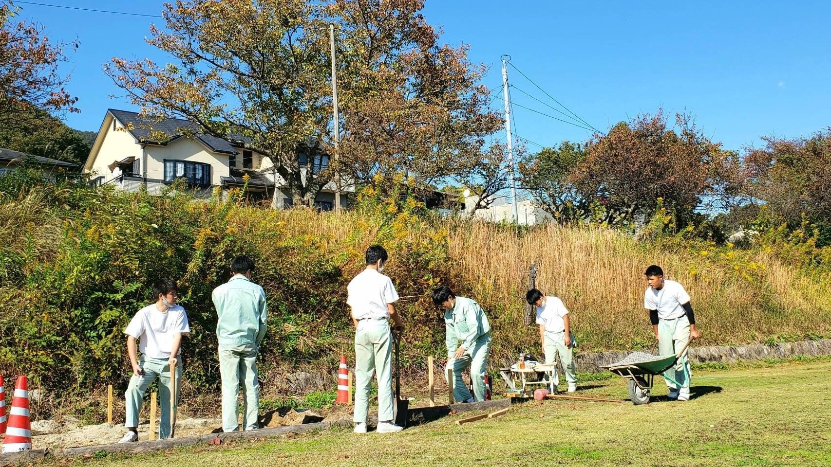 クラウドファンディング初日より多くのご反響をいただき誠にありがとうございます!宮浜温泉地域管理組合です!まずは無事にこのプロジェクトを進めることができたこと、とても嬉しく思っています。短い期間ではございますが、これからよろしくお願いいたします!さて、昨日より宮島工業高校の生徒さんが宮浜温泉を訪れ3棟目となる四阿の建築に取り掛かってくれています!晴天にも恵まれ、高校生活3年間の集大成として立派な四阿を完成させてくれると信じております^^設計図を少し見させていただいたのですが、どんな四阿になるかは完成までのお楽しみですね♪宮工生の皆さん、頑張ってくださいね!