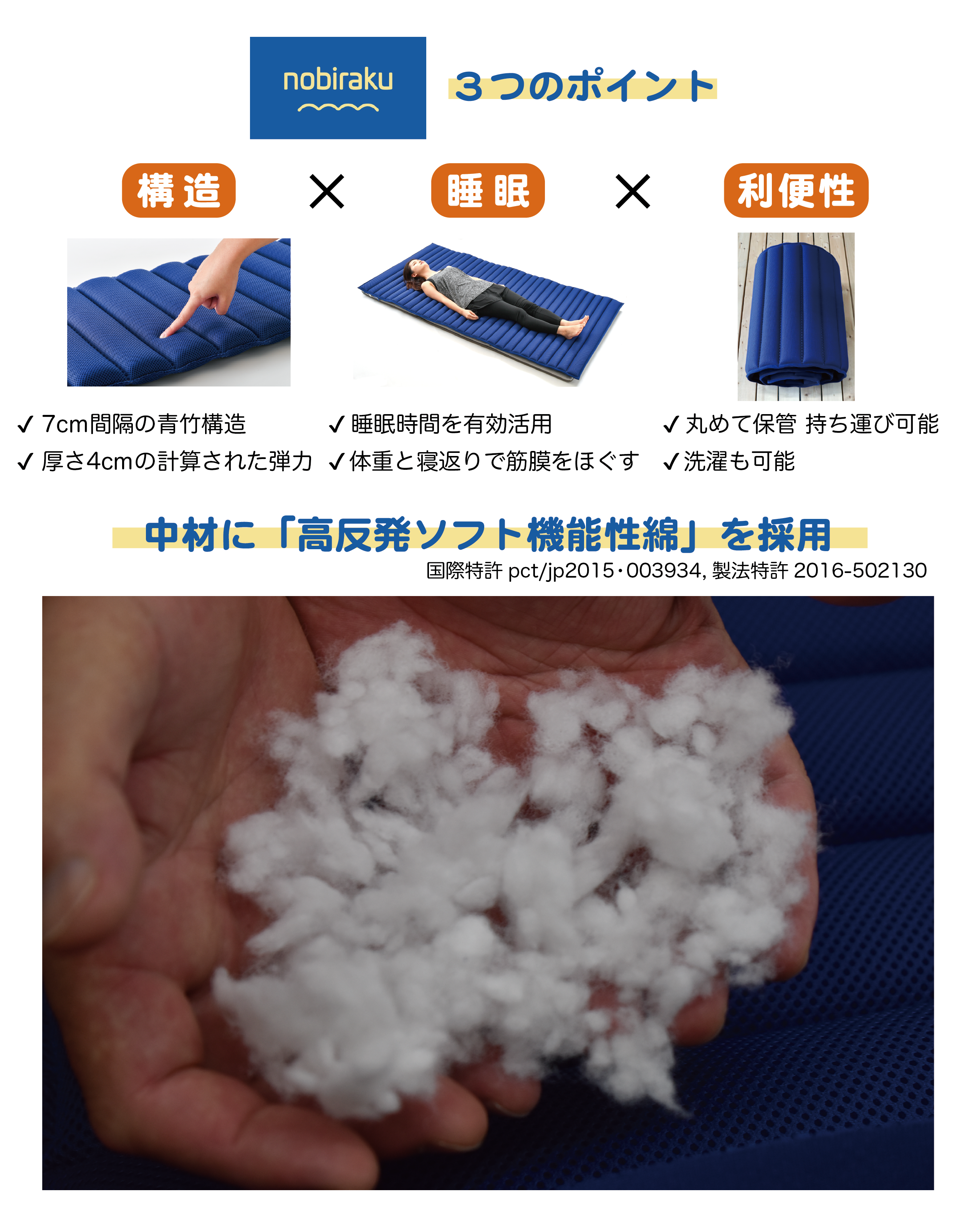 高反発ソフト機能性綿(国際特許pct/jp2015・003934,製法特許2016-502130)