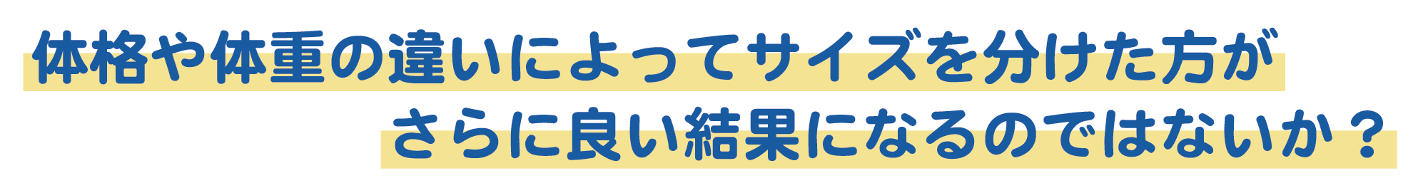※現在は上記2サイズをご用意しておりますが、今後は体格や体重の違いによってより多くのサイズ展開を検討しております。
