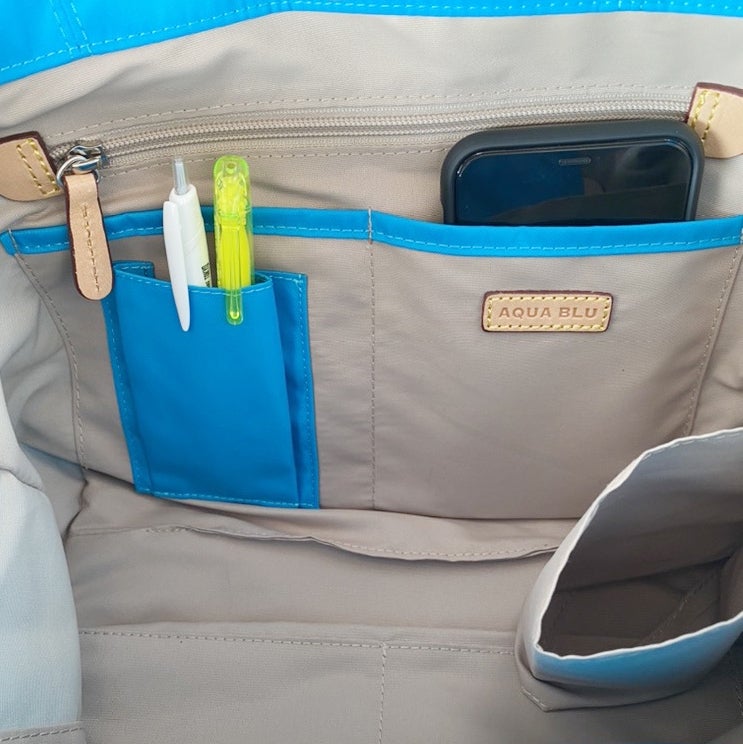 流行りのミニトートに見えて、意外な収納力。その理由は、7個もあるポケットとペットボトルホルダーにあります!