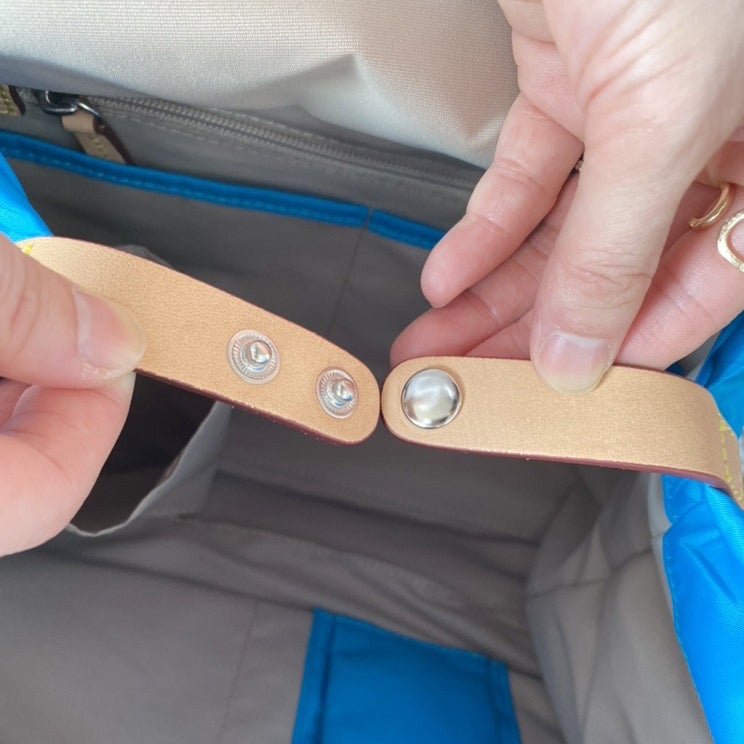 入口はマグネット止め、また中ふたがついており、バッグの中身が見えず安心感をキープ。突然の雨でもバッグの中の荷物を守ります。