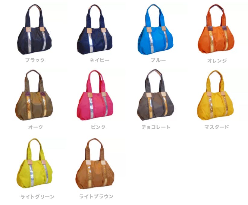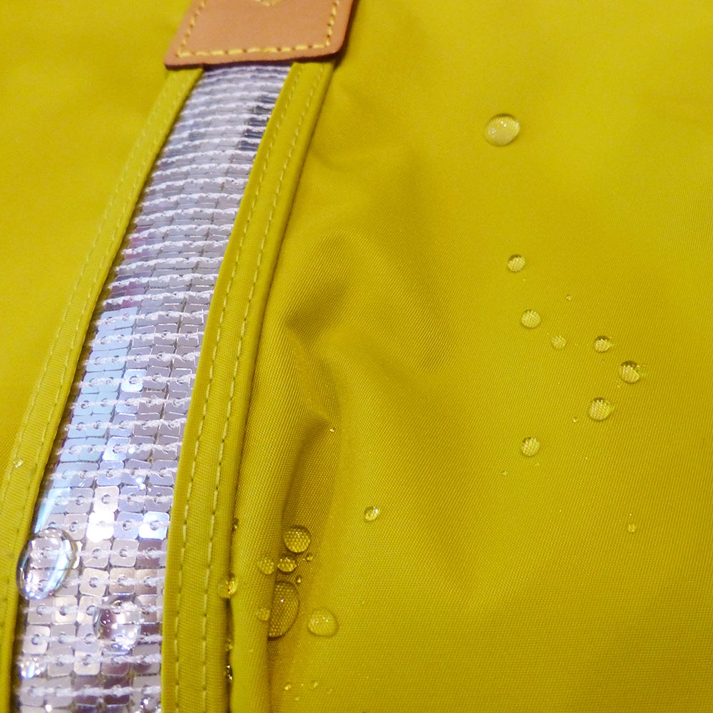 テフロン加工された高密度の生地はシルクのような上品な光沢がありとても上質なイメージ。ハリ感のあるしっかりした素材の為、荷物をたくさん入れても型崩れしにくいバッグです。