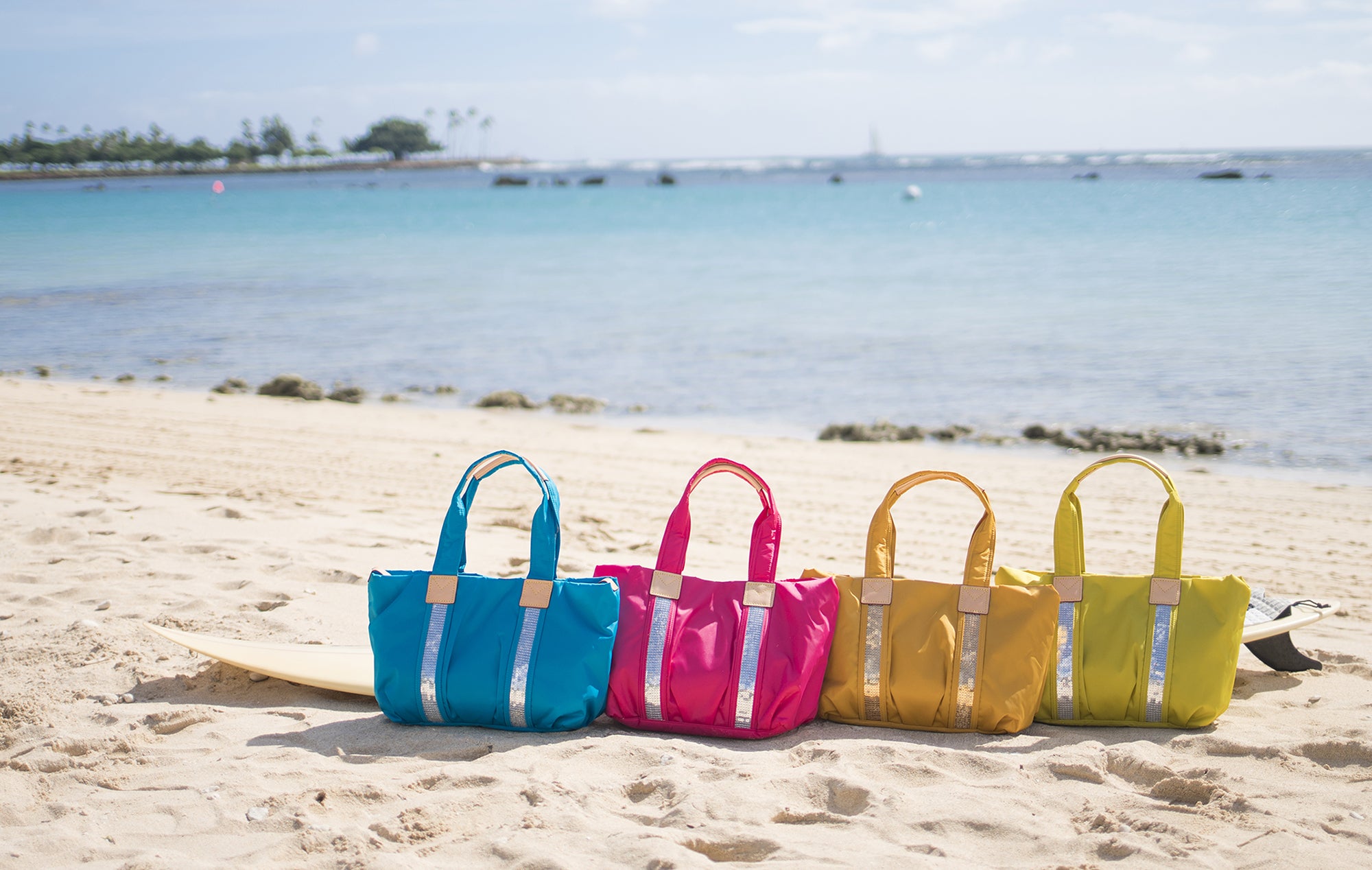 ロコガール達はビーチからタウンユースもできる使い勝手のいいバッグが必需品。軽くて丈夫で、水にも砂にも強い。もちろん急な雨でも安心して使えるもの・・・そんな贅沢なリクエストを全て叶える為に、世界のラグジュアリーブランドでも使用されている、高級ナイロン素材を使用。