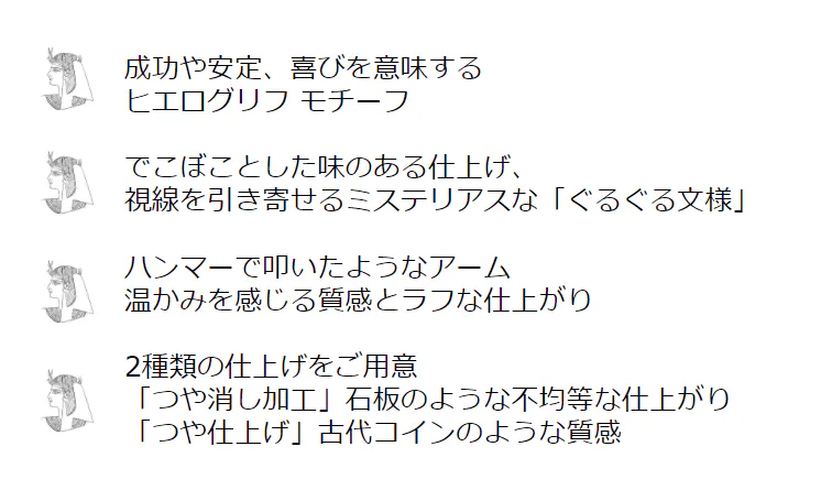 独特なデフォルメのヒエログリフを施し、