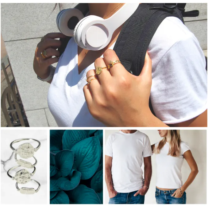 ”白Tシャツにデニムのためのジュエリー”