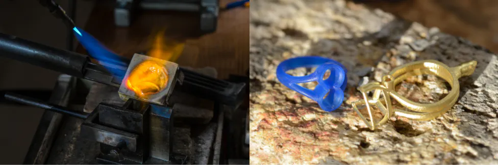 ⑤石膏の型を使って地金を溶かし成型