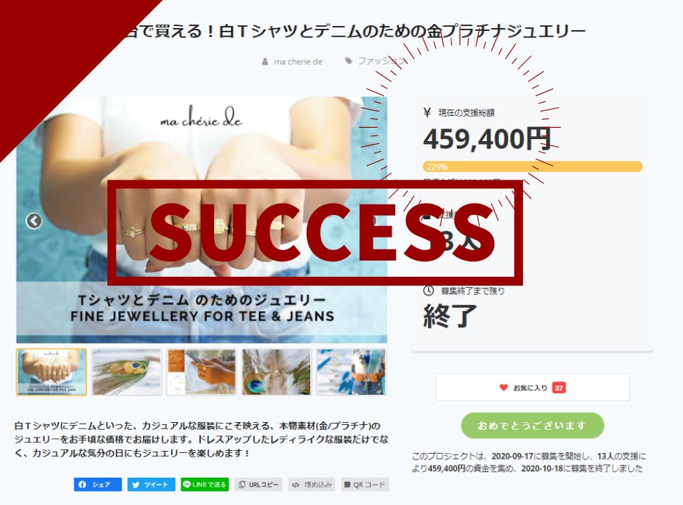 おかげさまで 229% 達成 にてプロジェクトを終了することができました!