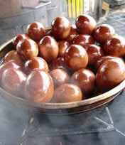 おいしい燻製卵を作るには、季節やその日の天候で、煮込み、燻製時間を加減することです。永年の経験が積み重なった味です。