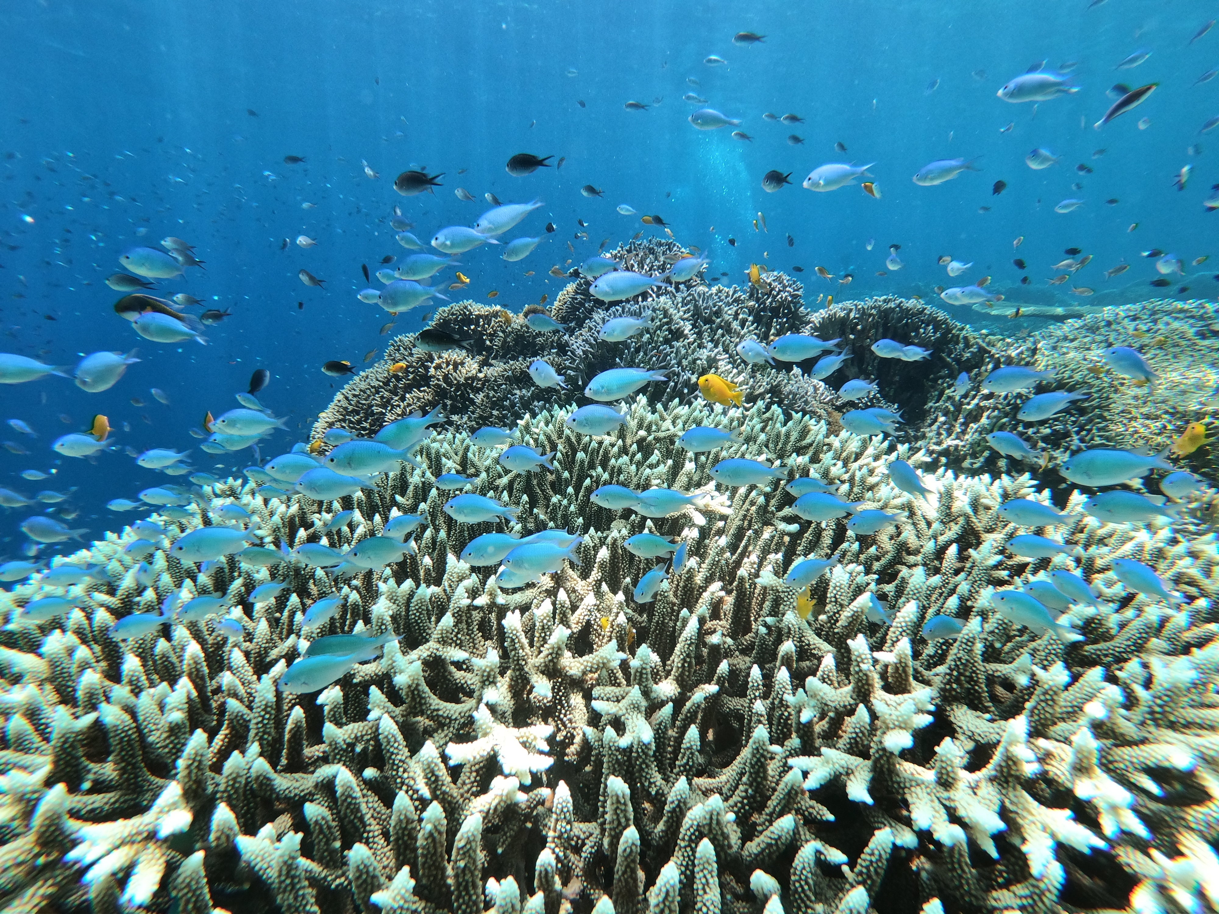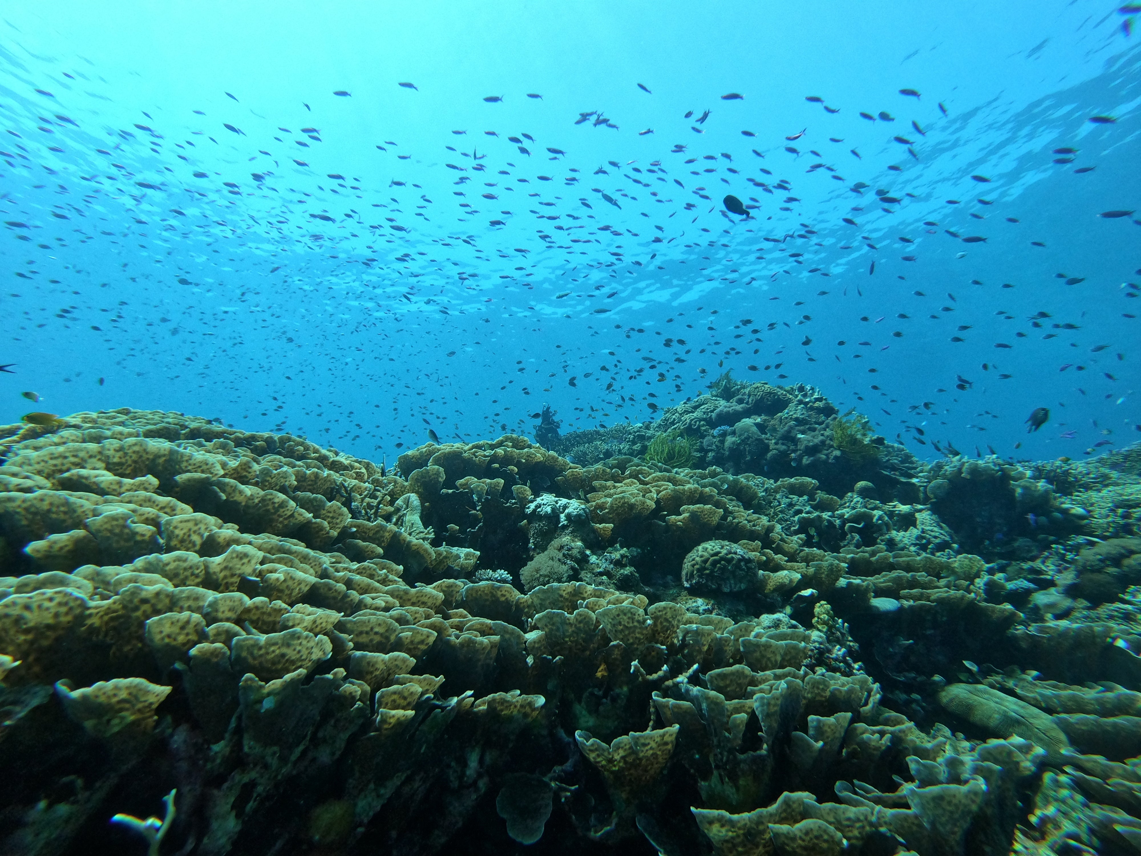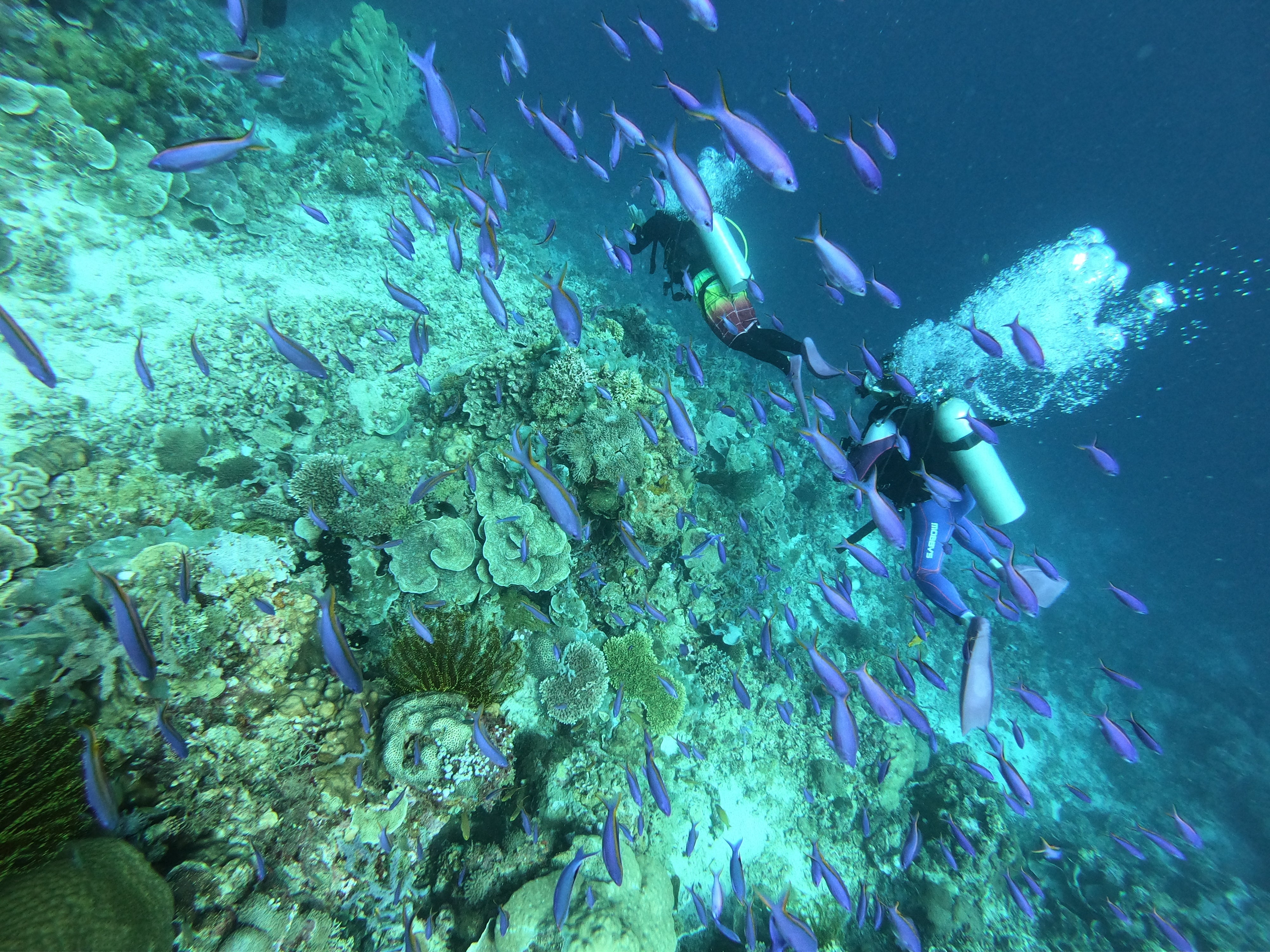 サンクチュアリにしておりますので浅瀬には魚が沢山根付き、タリマというポイントには水深18mくらいに沈没船の残骸があって漁礁となっており、たくさんの魚の群れが見られます。