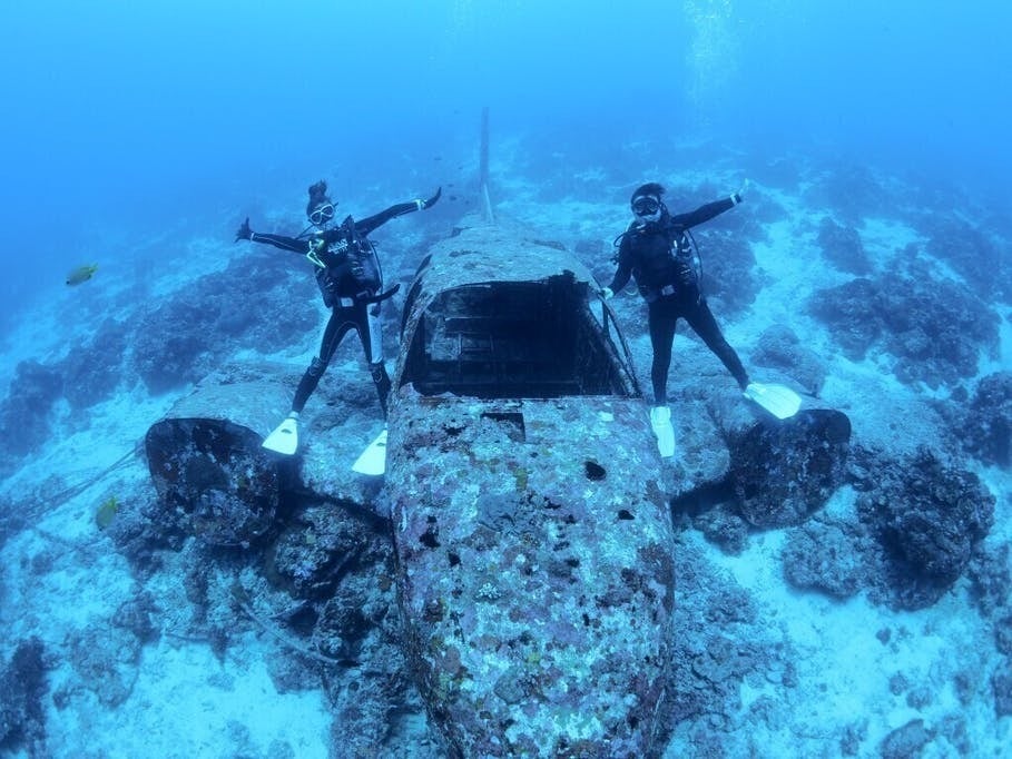 豊富な種類の魚と泳いだり、沈んだ飛行機や洞窟を探検したりと遊び方は自由に選べますので、お客様のレベル・ご要望に合わせたスポットをご案内致します。
