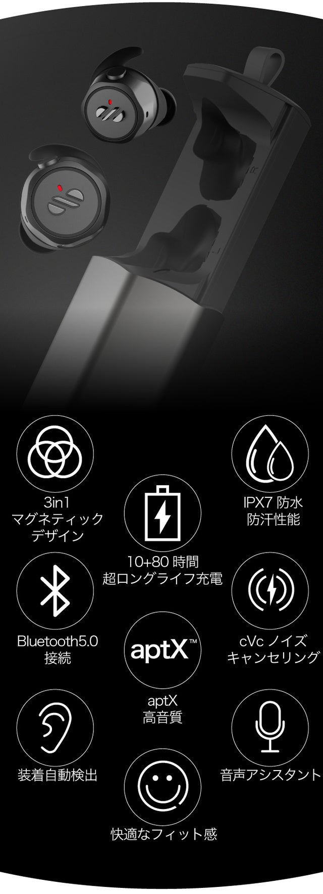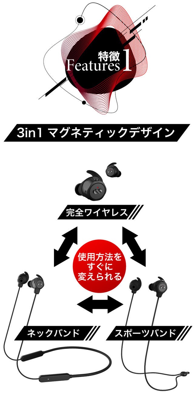 特許取得済みのAIRLOOP Hook™技術により、TWSイヤホンはスポーツバンドにしっかりと接続できます。