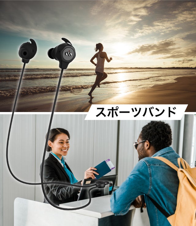 縦揺れがおこり耳から外れた際に無くしてしまう可能性のある屋外でのランニングや、耳から外すことが頻繁に起こるホテルや空港での待ち時間などは首からぶら下げておくことが出来るスポーツバンドが便利です。