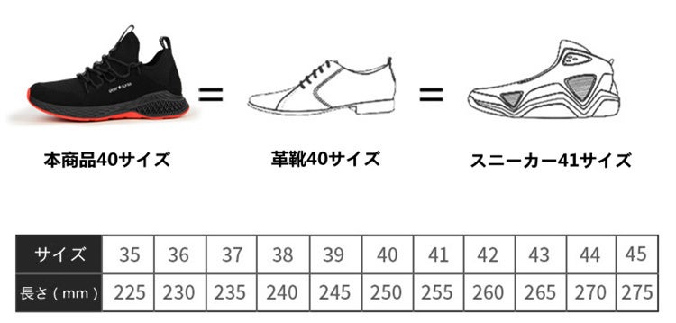 本商品は革靴と同じサイズで、普通のスニーカーよりワンサイズ上大きめとなります。