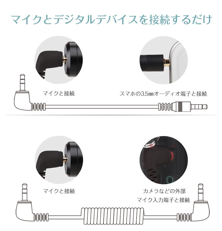 マイクとスマホ、PC、Macなどの録音可能なデジタルデバイスを接続するだけですぐに使えます。