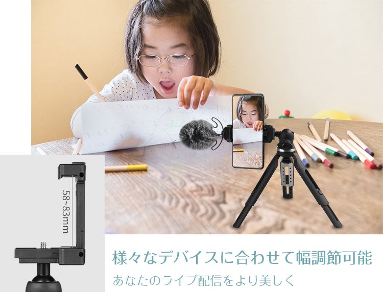 また、58~83mmの間でホルダーの幅が調整可能なため、スマートフォンだけでなく、GoProなどの様々なデバイスを設置することができます。