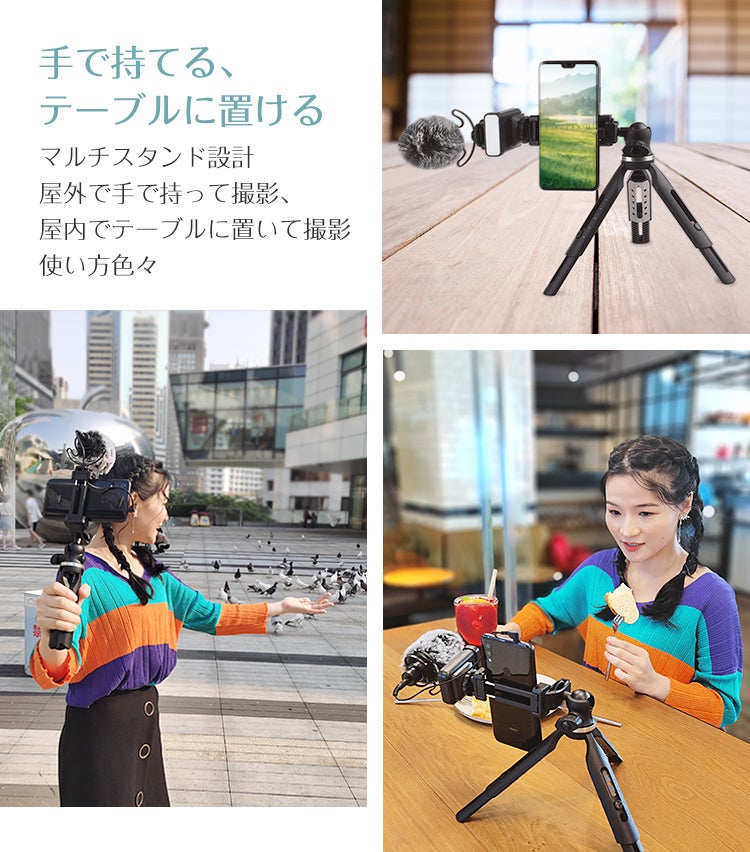 三脚部分はまとめると、手持ちでの撮影も可能です。外に出てアクティブ手持ちスタイルで。家の中でゆっくりと三脚で。