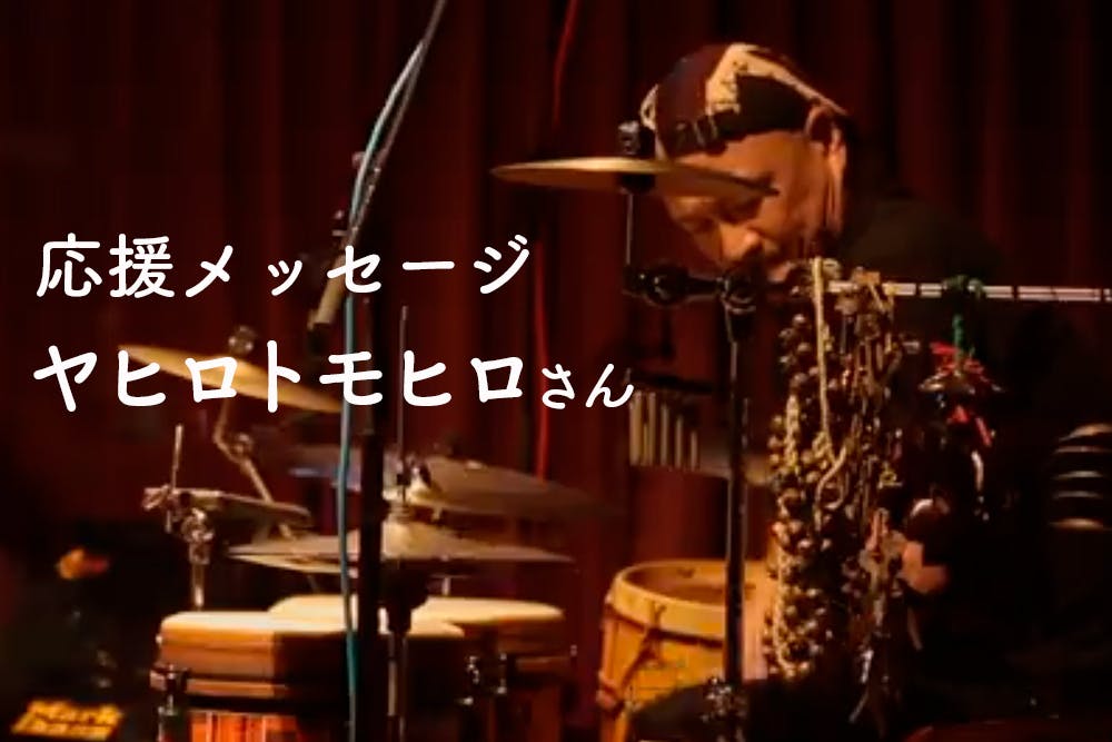 幾度もの日本ツアー、欧州ツアーで人気を誇るGAIA CUATRO(ガイア・クアトロ)、ウーゴ・ファトルーソとのユニットDos Orientales(ドス・オリエンタレス)、空に油など国内外のアーティストと共に活躍するパーカッショニスト、ヤヒロトモヒロさんからも応援メッセージをいただきました。