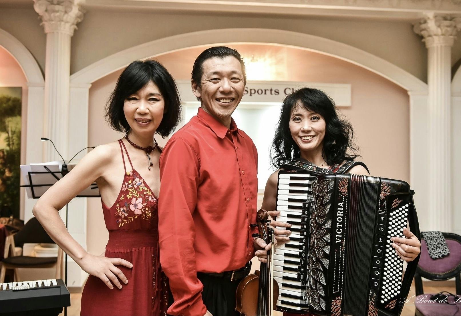 ティエンポではお馴染み、谷本仰さん(ヴァイオリン)、いわつなおこさん(アコーディオン)、秋元多恵子さん(ピアノ)3名によるタンゴトリオ Trio Los Fandangos(