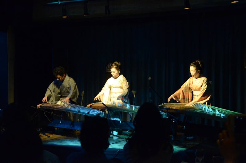 当時ティエンポが推進する文化交流プログラムで来日していたコロンビアのアルパ演奏家カミロの「日本の伝統弦楽器である箏を学んでみたい」という希望に応えてくださったお二人。