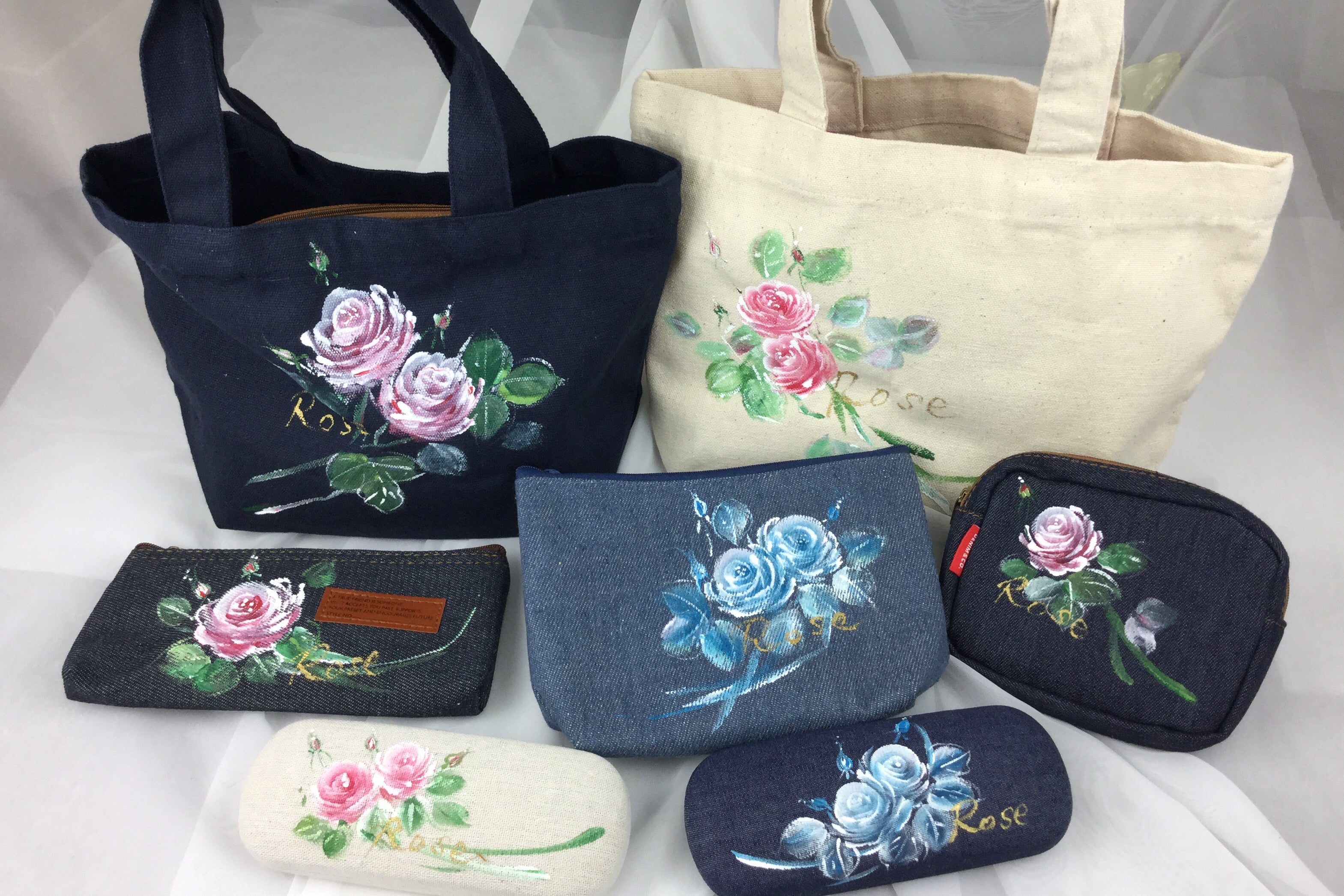 内容:やさしい色のアクリル絵の具を使いフリーハンド技法でペイントしますのでばらの美しさは様々