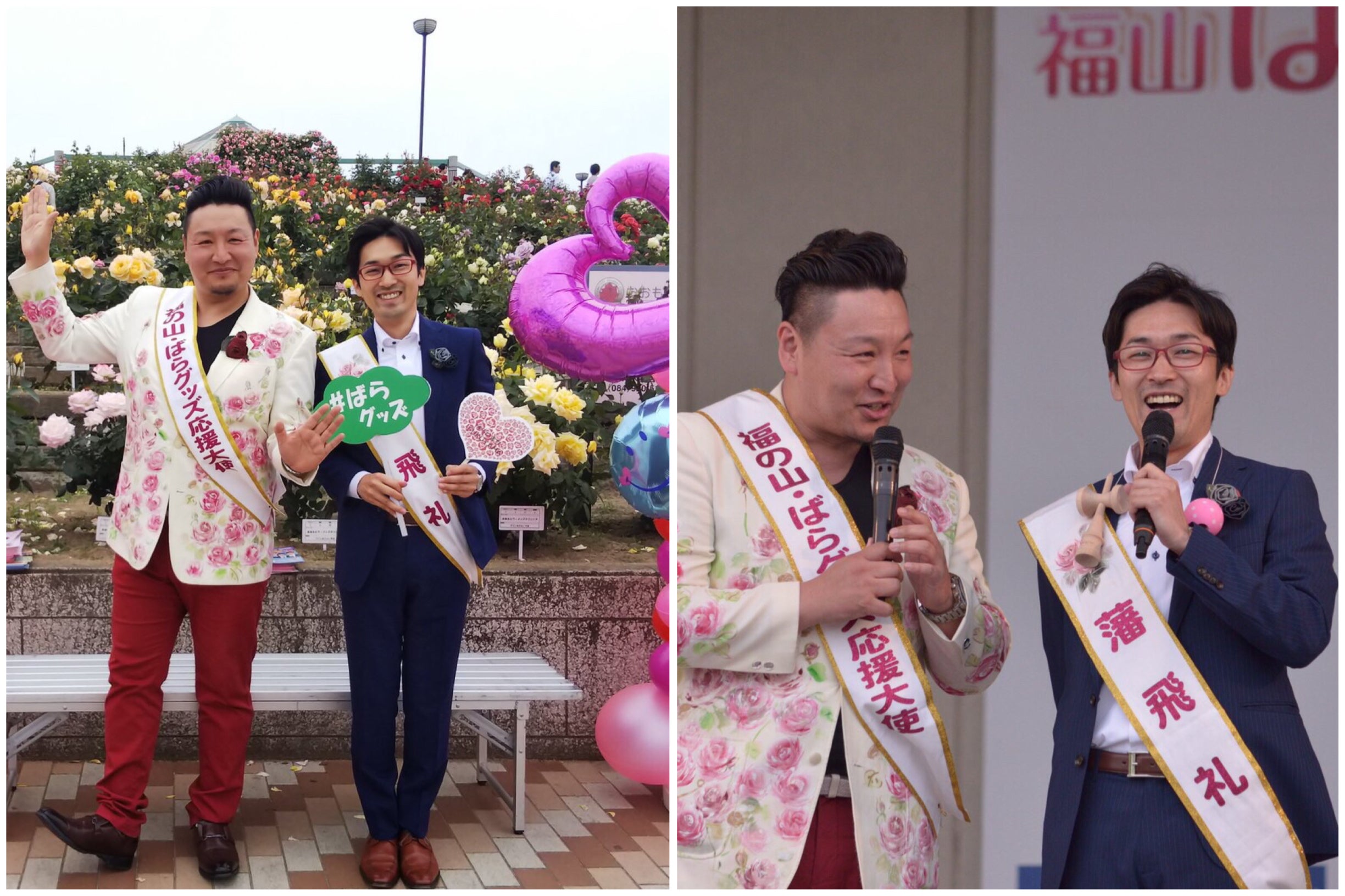 私達がばらグッズさんと出会ったのは6年前 。一人(竜児)が福山出身という事で ご縁があり 認定ばらグッズの審査員や福山ばら祭での盛り上げ等のお手伝いをしております。