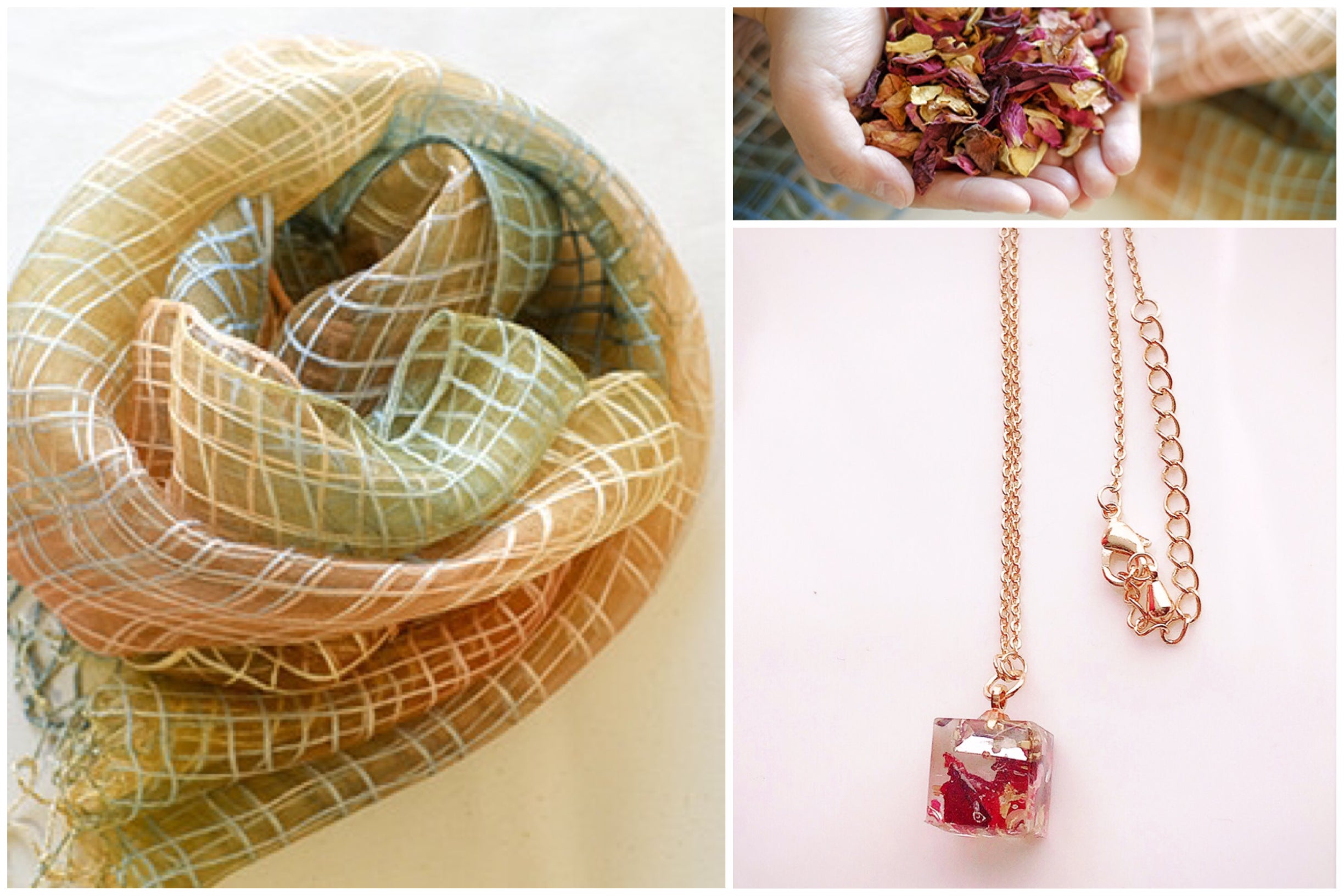 Iコース ばら染ストール&ばらの花びらのネックレス