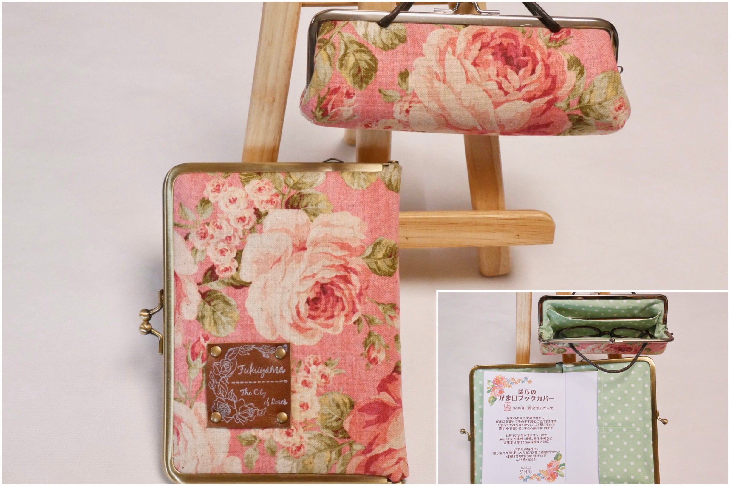 内容:文庫本をセットし、開くとそのまま本が読めるがま口型ブックカバー。